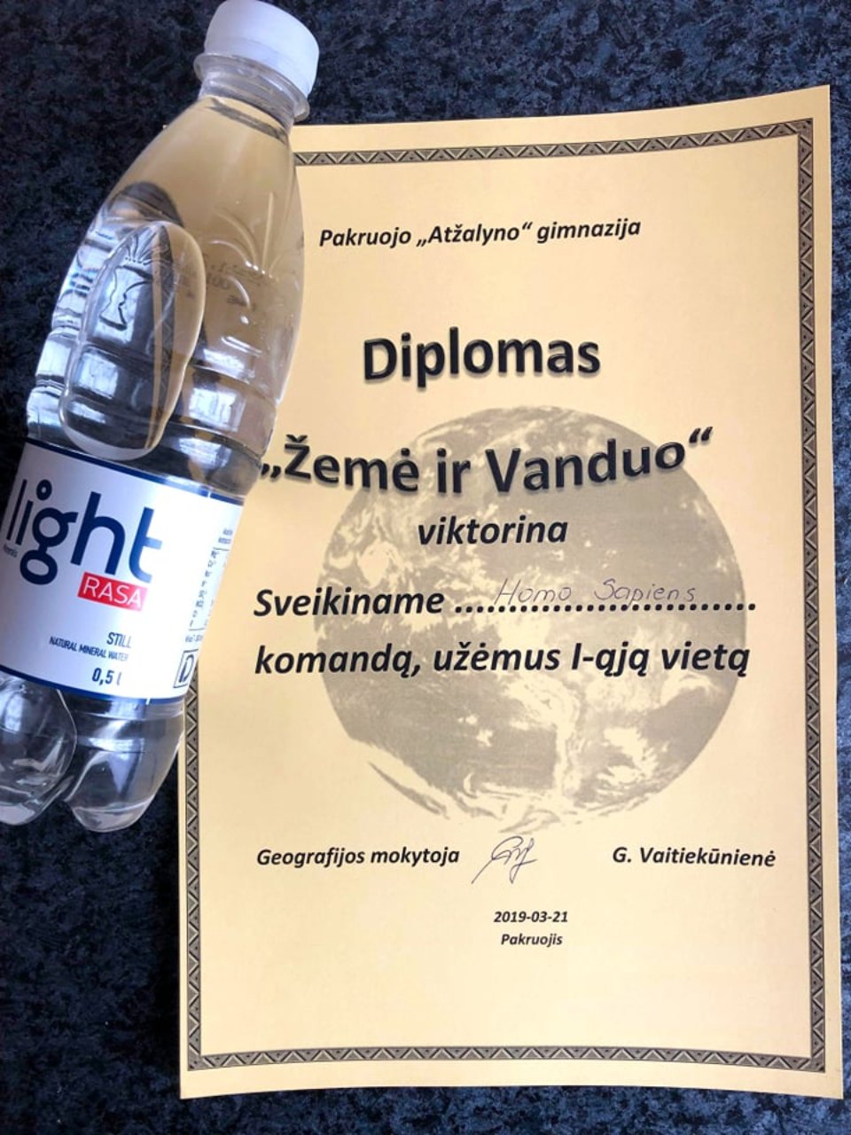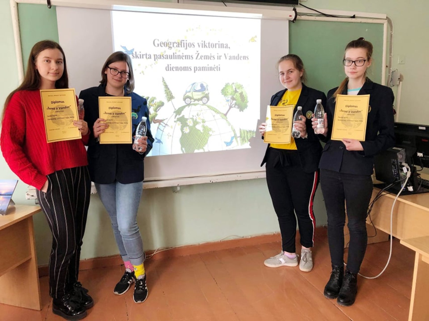 Kovo 21 dieną mūsų gimnazijos I-III klasių mokiniai dalyvavo viktorinoje. Klausimus ruošė ir renginį vedė geografijos mokytoja Gintarė Vaitiekūnienė. Gimnazistai prisiminė vandens reikšmę gyvybei, pagilino žinias apie žemę, mūsų planetą, kuri yra nuostabi, tik mes, žmonės, ją labai teršiame ir nesaugome. Visi dalyviai buvo šaunūs ir aktyvūs, daugiausia taškų surinkusi Ic klasės komanda džiaugėsi prizais bei diplomais.