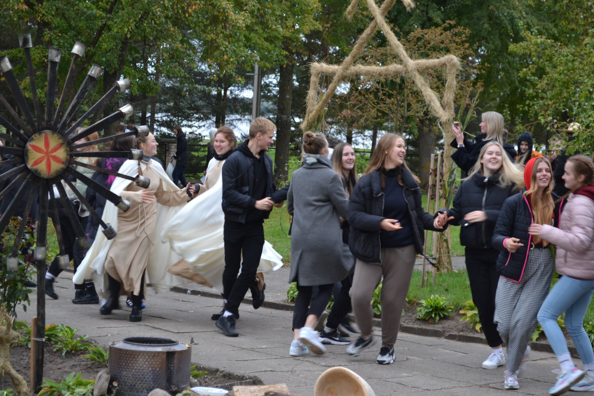 Renginyje buvo daug veiksmo. Pirmokams surengtos baltų papročių kupinos „krikštynos“, po kurių mokiniai jau tikrai įsiliejo į mūsų bendruomenę. Pavėluotas „krikštas“ laukė ir antrokų, nes pernai renginys negalėjo vykti dėl pandemijos. „Pakrikštyta“ ir naujoji gimnazijos direktorė Asta Valuntienė, kuriai reikėjo įveikti ir vieną išbandymą. Priesaikos tekstą skaitė ir gimnazijos vadovei jį įteikė mokinių prezidentė, abiturientė Sandra Jurytė, iš vaidilučių rankų – simbolinė atminimo dovanėlė ir baltų kultūros ženklas, o technologijų mokytojas Egidijus Impolis direktorei užkabino medžio dirbinį, priminsiantį šią dieną. Visi „pakrikštytieji“ buvo apdovanoti atminimo medaliais. Juos technologijų mokytojui Egidijui Impoliui pagaminti padėjo abiturientas Joris Hyovon Vaicekauskas ir IĮ „Laukinis ragas“ direktorius Gražvydas Jokantas. Vėliau prasidėjo genčių žaidynės. Dalyvius traukte traukė žaidimas ripka, kurį žaisti mokė Panevėžio rajono Ėriškių kultūros centro komanda. Gimnazistai galėjo išbandyti įvairias rungtis: šaudymą iš lanko, petankę, smiginį, galynėjimąsi su maišais, futbolą kitaip ir virvės traukimą. Taip pat žaidėjai gurkšnojo arbatą, šildėsi prie laužo. Renginyje skambėjo lietuvių liaudies dainos, užbūrė magiškas Pakruojo kultūros centro muzikanto Gintauto Gvazdausko armonikos ir technologijų mokytojo, tautodailininko Egidijaus Impolio meistriškai valdomų skrabalų skambesys.