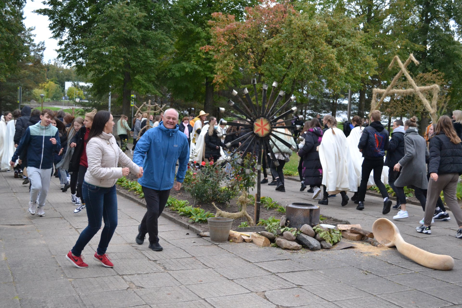 Baltų vienybės dieną išgyvenome bendrystės jausmą Sveikinimo žodį tarė šventės iniciatorė, istorijos mokytoja Gražina Kairiūkštienė. Visos klasės persikūnijo į įvairias baltų gentis, paruošė tradicinių patiekalų. Vaidilutės lydėjo oriai žengiančius prūsus, sėlius, jotvingius, aukštaičius, žemaičius, lietuvius, sūduvius, latgalius, Rytų galindus, skalvius, žiemgalius, kuršius. Kiekvienoje Baltų šventėje buvo uždegama ugnis kaip dievybės simbolis, pas mus iškilmingoms apeigoms vadovavo technologijų mokytojas Egidijus Impolis, pakvietęs direktorę ir klasių auklėtojas tarti palinkėjimą ir dar kaitriau įžiebti ugnį metant į ją saują grūdų ir druskos. Linkėta bendrystės, vienybės, tarpusavio supratimo, gyvenimo čia ir dabar...