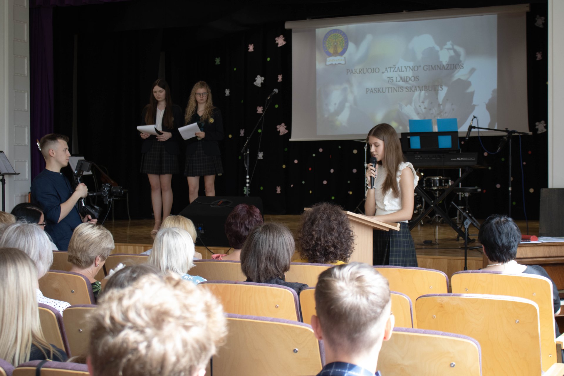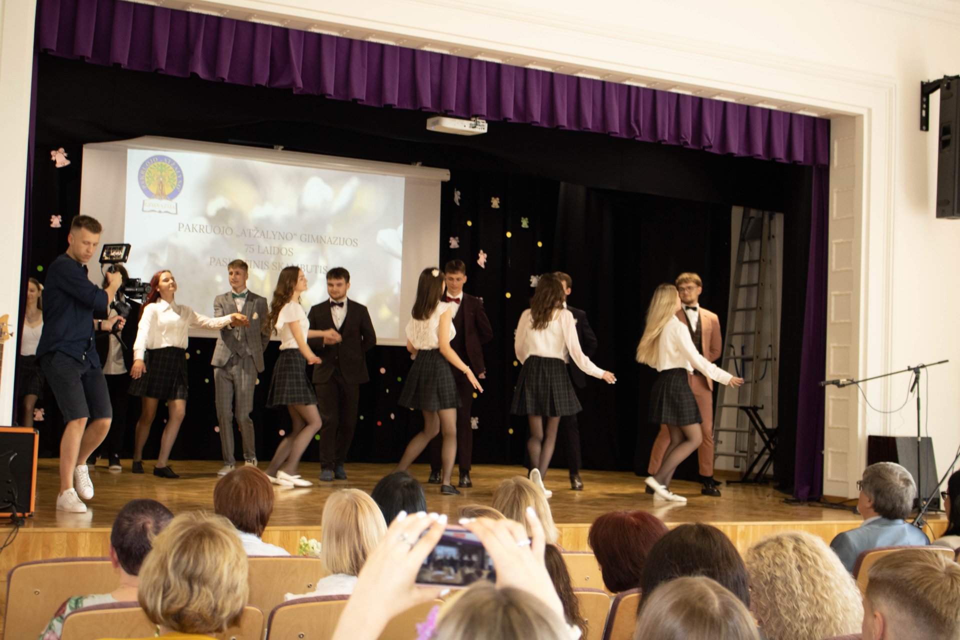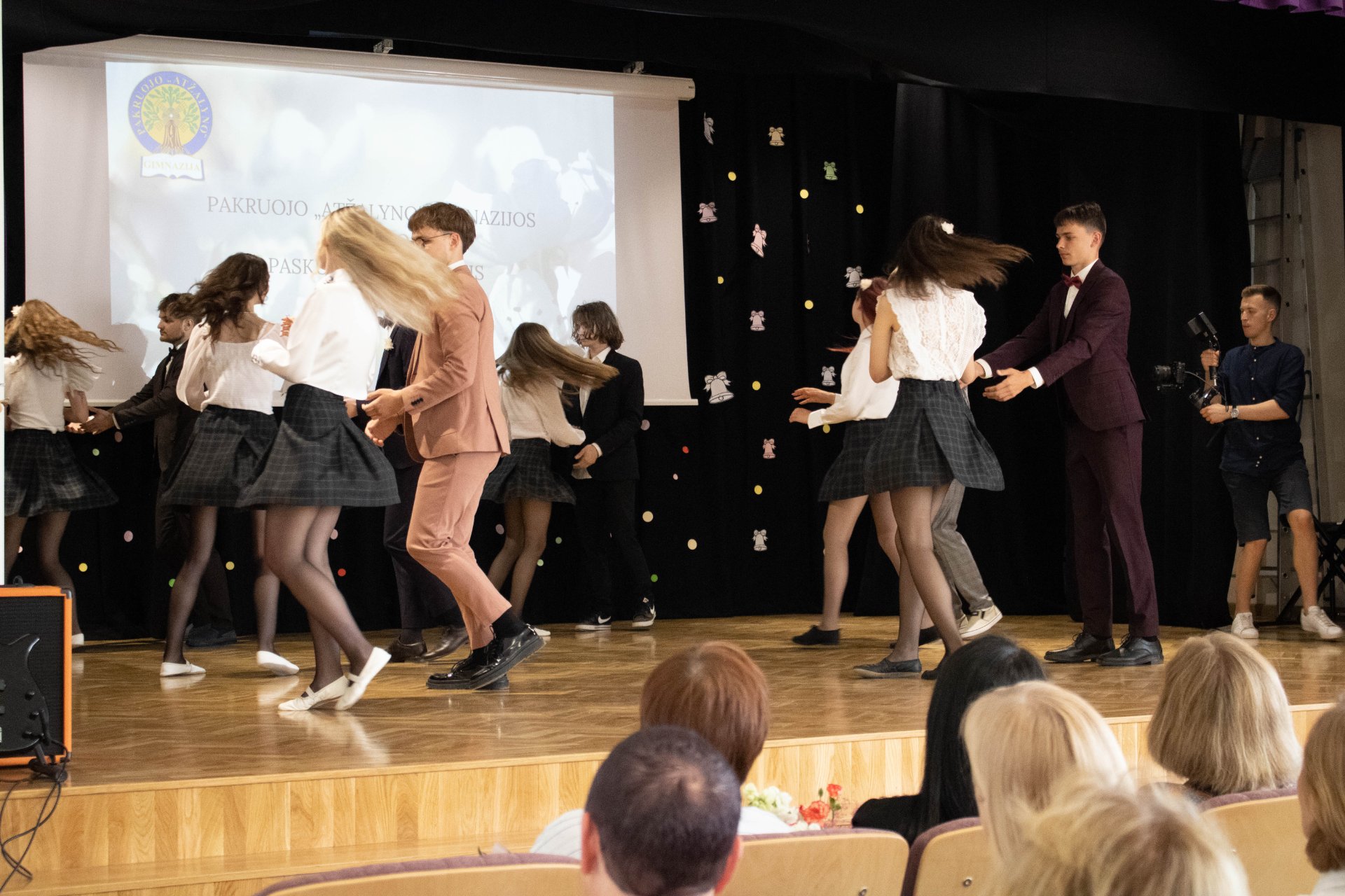75 gimnazijos laidai nuskambėjo Paskutinis skambutis Aktų salėje Paskutinio skambučio šventė buvo jautri ir nuoširdi. Renginį tradiciškai organizavo trečiokai gimnazistai. Abiturientams širdis graudino mokinių muzikiniai pasirodymai. Kūrinius atliko vokalinis tercetas (Evelina, Gabrielė ir Jokūbas), Martyna ir grupė „Antiq“, dvi skambias dainas dovanojo vaikinų ansamblis, taip pat ukulėlių vokalinis ansamblis „Fireflies“, girdėjome Evelinos atliekamą kūrinį „Smuiko stygos“, o jai smuiku pritarė abiturientas Jokūbas, ketvirtokai žavingai sukosi valso sūkury. Trečiokas Vincentas skaitė savo kūrybos eilėraštį ir kvietė neliūdėti, juk pavasaris, apie jaunystės šėlsmą ketvirtokų gyvenime buvo ir trečiokų sukurtas filmukas. Padrąsinantys ir sugraudinantys, viltingi ir jautrūs žodžiai skambėjo iš gimnazijos direktorės Astos Valuntienės, buvusio direktoriaus Kęstučio Razumo, direktoriaus pavaduotojos ugdymui Rasos Augustinaitienės (beje, patiems aktyviausiems ji įteikė padėkos raštus), mokinių prezidentės Gretos Gudaitės, abiturientų pirmųjų mokytojų ir buvusių auklėtojų lūpų, taip pat padėkos ir atsisveikinimo žodį tarė ir patys abiturientai. Tylos minute prisimintas ir pagerbtas buvusio auklėtojo, mokytojo Juozo Vėdaro atminimas. Be to, šventėje dalyvavo ir sporto centro direktorė Aušra Dvelienė, kuri tarė sveikinimo žodį ir įteikė padėkos raštus geriausių sporto rezultatų pasiekusiems abiturientams.