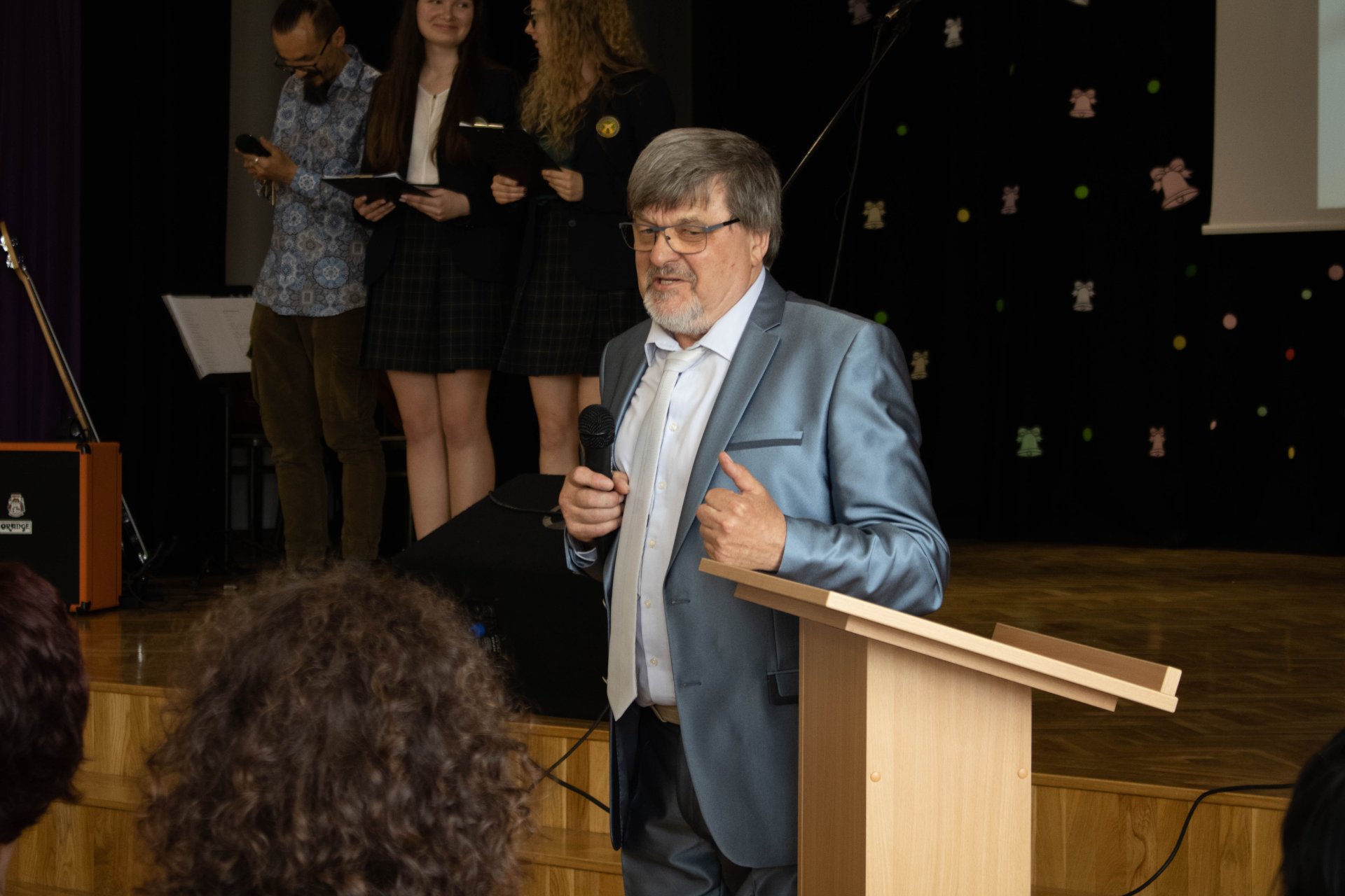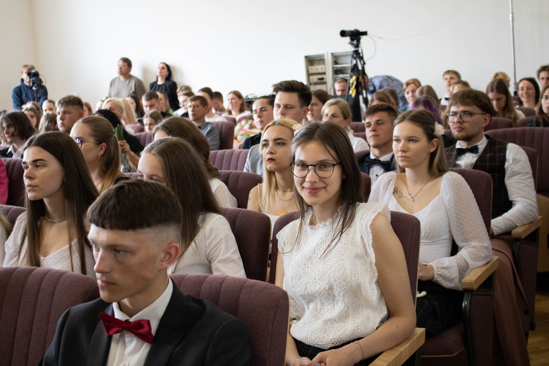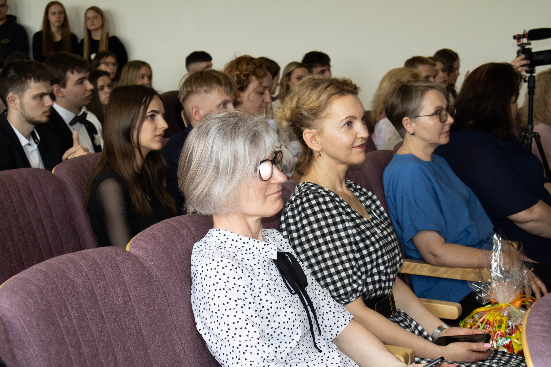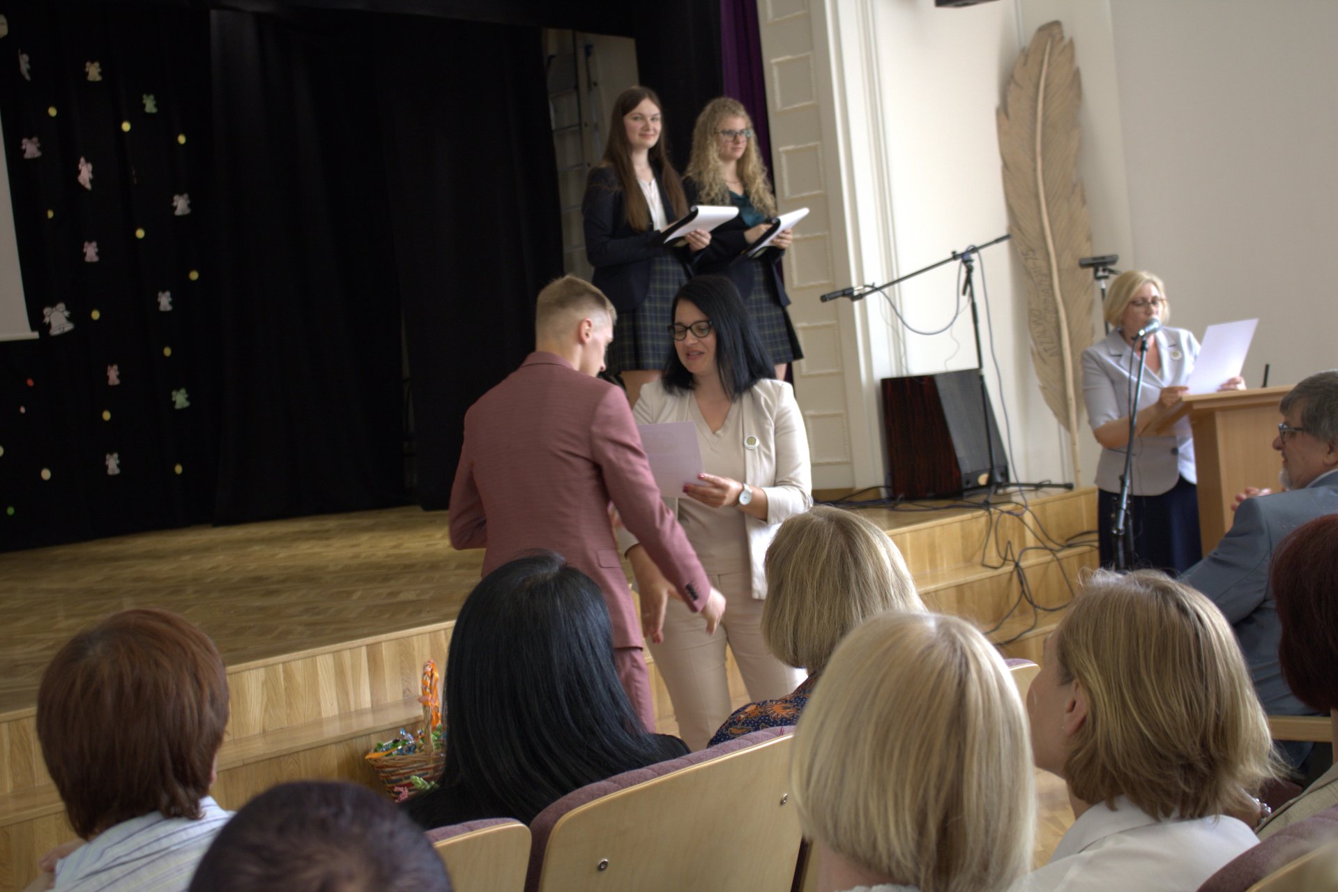 75 gimnazijos laidai nuskambėjo Paskutinis skambutis Aktų salėje Paskutinio skambučio šventė buvo jautri ir nuoširdi. Renginį tradiciškai organizavo trečiokai gimnazistai. Abiturientams širdis graudino mokinių muzikiniai pasirodymai. Kūrinius atliko vokalinis tercetas (Evelina, Gabrielė ir Jokūbas), Martyna ir grupė „Antiq“, dvi skambias dainas dovanojo vaikinų ansamblis, taip pat ukulėlių vokalinis ansamblis „Fireflies“, girdėjome Evelinos atliekamą kūrinį „Smuiko stygos“, o jai smuiku pritarė abiturientas Jokūbas, ketvirtokai žavingai sukosi valso sūkury. Trečiokas Vincentas skaitė savo kūrybos eilėraštį ir kvietė neliūdėti, juk pavasaris, apie jaunystės šėlsmą ketvirtokų gyvenime buvo ir trečiokų sukurtas filmukas. Padrąsinantys ir sugraudinantys, viltingi ir jautrūs žodžiai skambėjo iš gimnazijos direktorės Astos Valuntienės, buvusio direktoriaus Kęstučio Razumo, direktoriaus pavaduotojos ugdymui Rasos Augustinaitienės (beje, patiems aktyviausiems ji įteikė padėkos raštus), mokinių prezidentės Gretos Gudaitės, abiturientų pirmųjų mokytojų ir buvusių auklėtojų lūpų, taip pat padėkos ir atsisveikinimo žodį tarė ir patys abiturientai. Tylos minute prisimintas ir pagerbtas buvusio auklėtojo, mokytojo Juozo Vėdaro atminimas. Be to, šventėje dalyvavo ir sporto centro direktorė Aušra Dvelienė, kuri tarė sveikinimo žodį ir įteikė padėkos raštus geriausių sporto rezultatų pasiekusiems abiturientams.