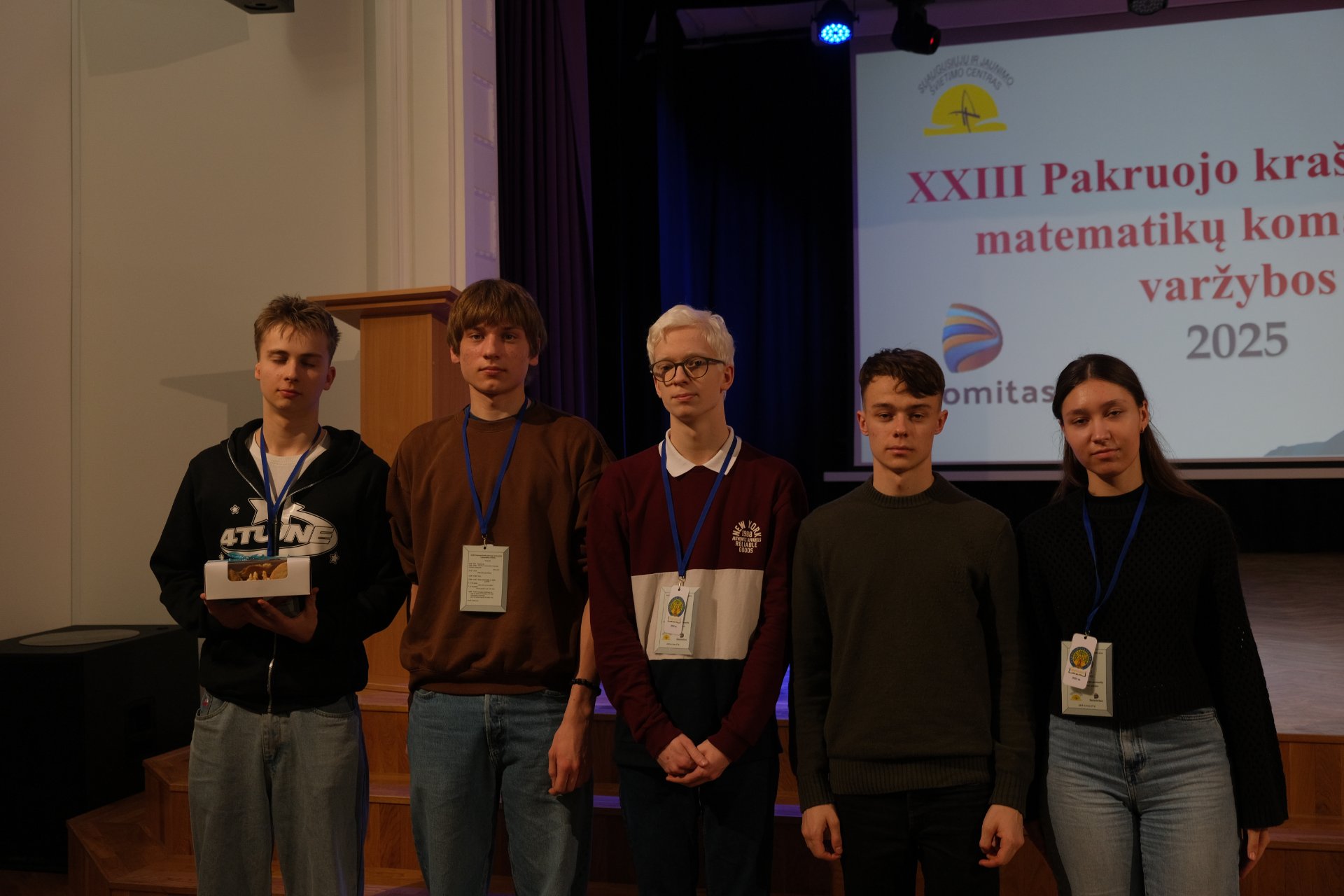 Kovo 27-ąją įvyko laukiamiausias ir didžiausias savaitės renginys MADI 2025. Jo pagrindinė dalis – XXIII Pakruojo krašto jaunųjų matematikų komandinės varžybos, kuriose susirungė 23 komandos iš Panevėžio Juozo Balčikonio, Utenos Adolfo Šapokos, Biržų „Saulės“, Vilniaus jėzuitų, Panevėžio Kazimiero Paltaroko, Pasvalio Petro Vileišio, Joniškio ,,Aušros“, Anykščių Jono Biliūno, Klaipėdos ,,Ąžuolyno“, Alytaus šv. Benedikto, Jotvingių, Adolfo Ramanausko-Vanago, Šiaulių Stasio Šalkauskio ir Pakruojo „Atžalyno“ gimnazijų. Užduotis varžyboms parengė ir komandų darbų vertinimo komisijoms vadovavo Vilniaus universiteto MIF Matematikos instituto direktorius prof. dr. D. Šiaučiūnas ir doc. dr. A. Apynis. Komandas sveikino gimnazijos direktorė Asta Valuntienė. Sėkmės linkėjo Pakruojo švietimo skyriaus vedėja Irena Mažulienė bei Pakruojo suaugusiųjų ir jaunimo švietimo centro direktorė Rima Juozapavičienė.