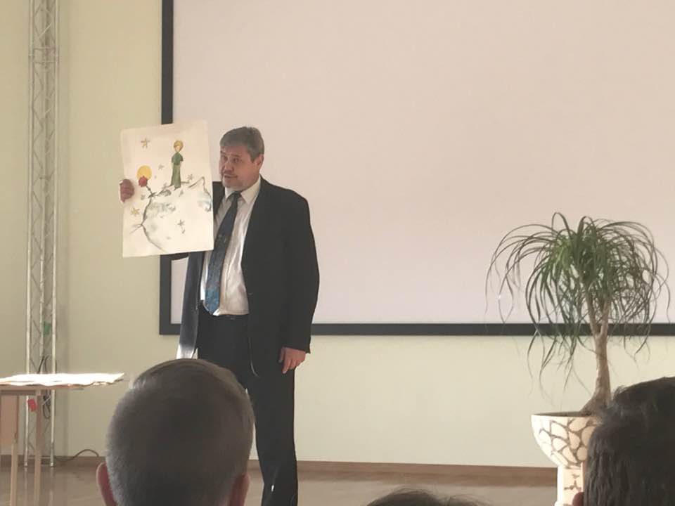 Aktorius pas mus svečiuojasi ne pirmą kartą ir visada užburia jo mokėjimas bendrauti, kalbos įtaigumas, be to, jam puikiai pavyksta atskleisti skaitomų kūrinių grožį. Džiaugiamės mūsų gimnazistų atidžiu klausymu ir dėkojame profesionaliam skaitovui už dvasingumo pamokas.