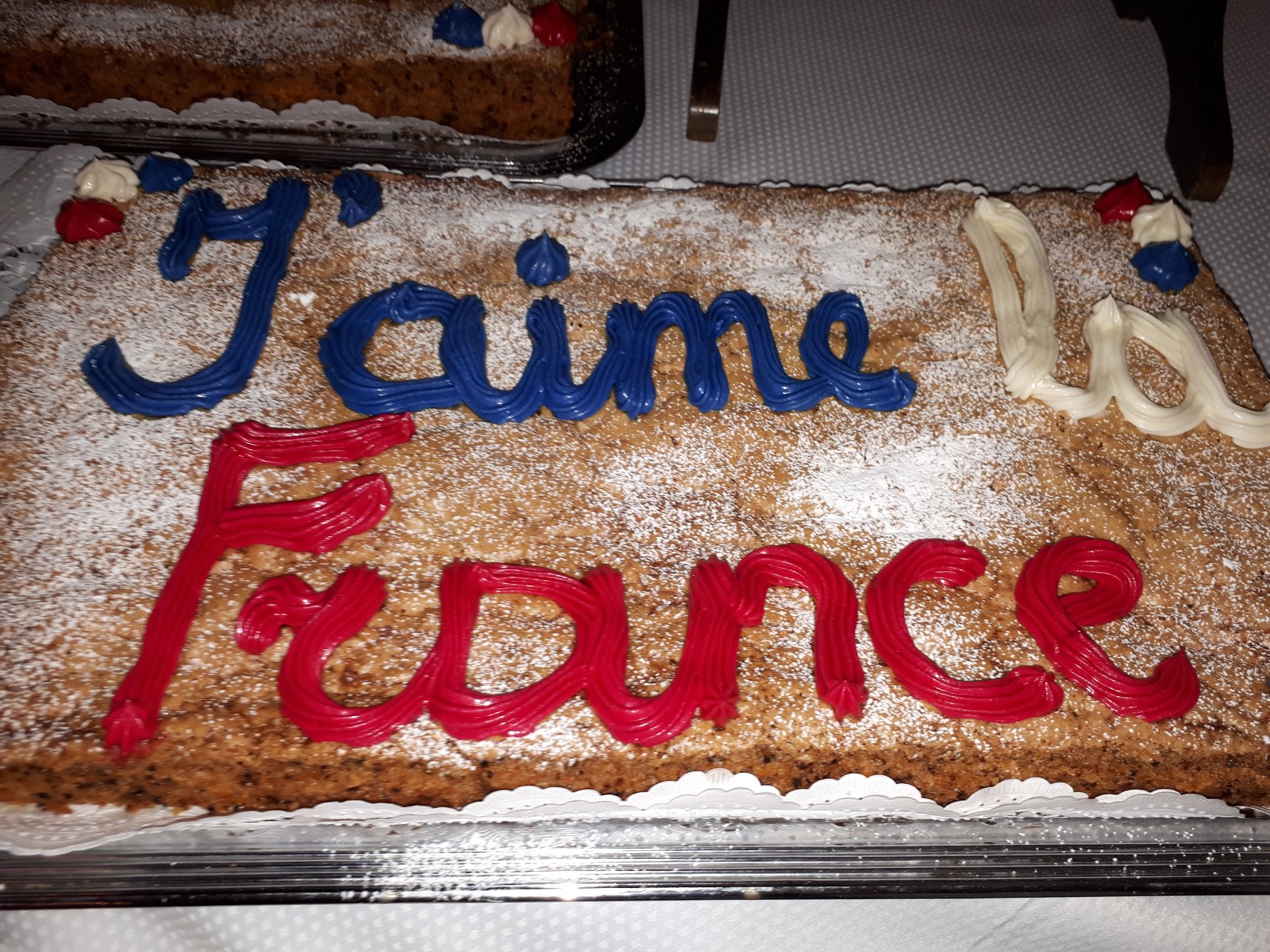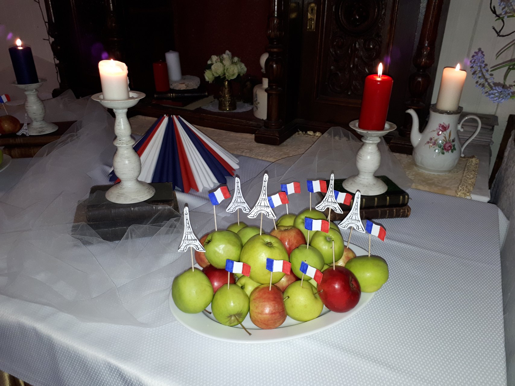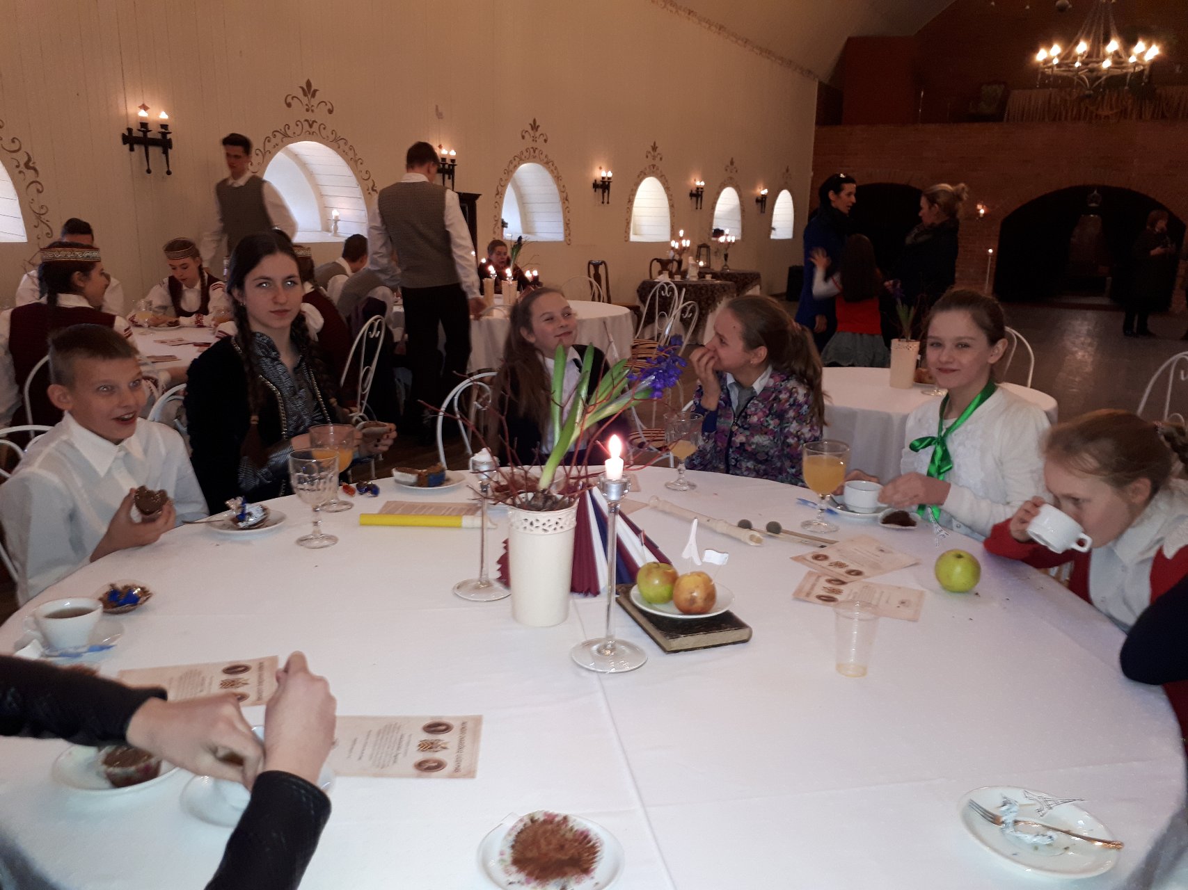 Kultūringam, nuoširdžiam ir šiltam bendravimui nuteikė ir pati dvaro aplinka: baltomis staltiesėmis užtiesti staliukai, degančios žvakės, Prancūzijos vėliavos spalvų (mėlynos, baltos, raudonos) salės interjero dekoras. Visų akys krypo į pagrindinį vaišių stalą, ant kurio puikavosi dvaro šeimininkių iškeptas puošnus, skanus ir labai didelis morkų pyragas, viliojo saldainiai, obuoliai, gardžiai kvepėjo sultys, kava, arbata, „Žemynos“ mokyklos septintokų iškepti gardūs keksiukai.