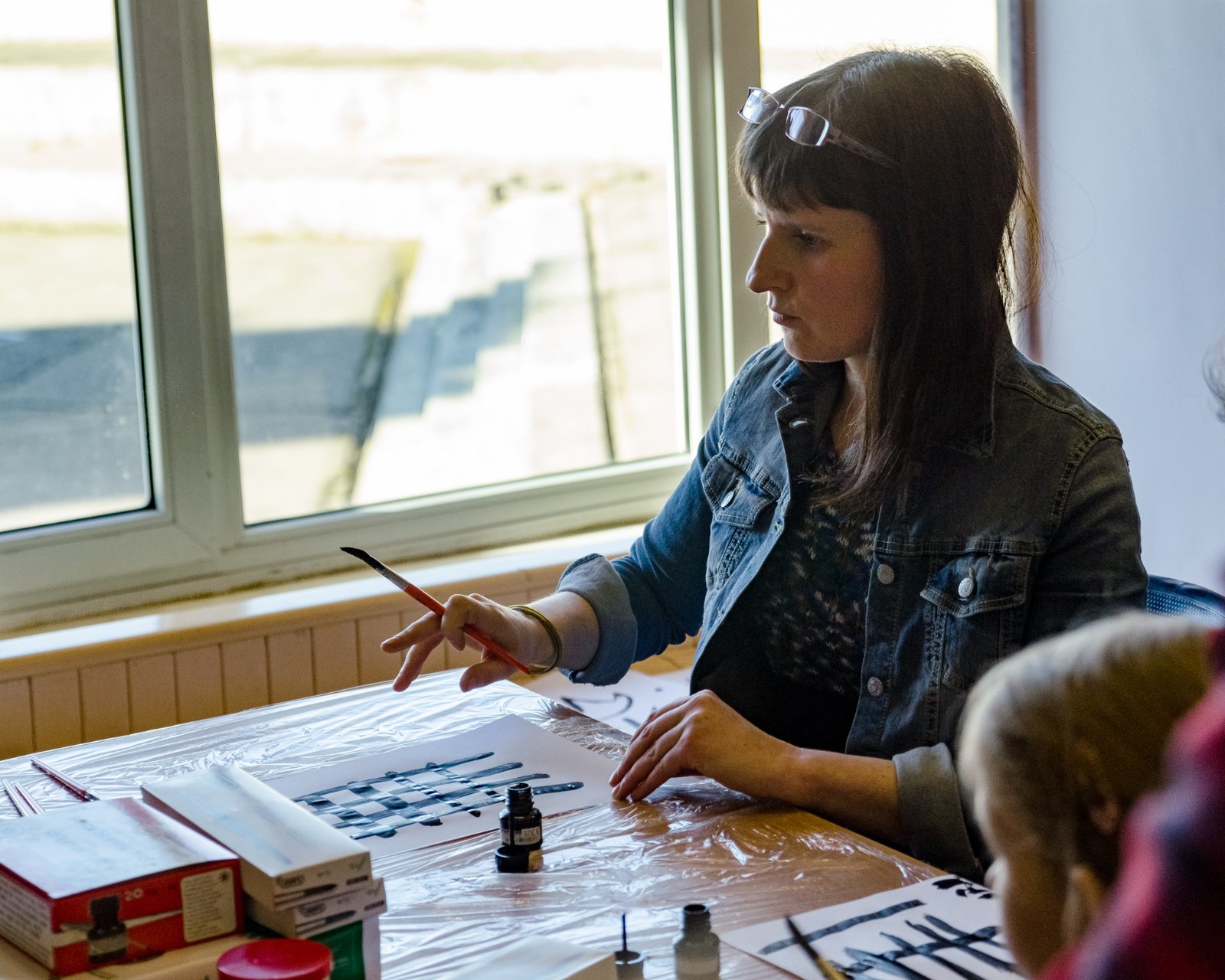 Sumi-e Kaligrafijos (japonų tapybos tušu) neišsigando tos pačios klasės merginos Simona Baltėnaitė ir Domantė Beliackaitė.