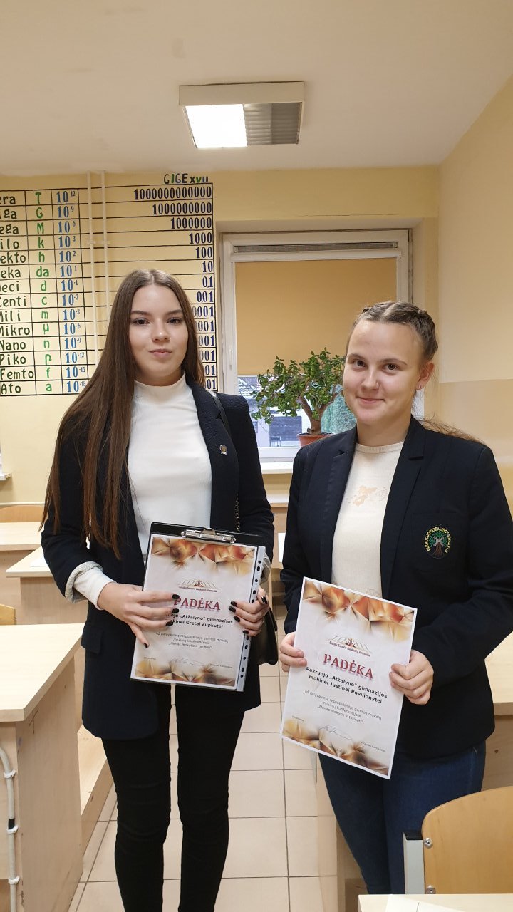 Gruodžio 6 d. gimnazistų komanda dalyvavo respublikinėje mokinių ir mokytojų gamtos mokslų konferencijoje „Menas mokytis ir tyrinėti“, vykusioje Šiaulių Simono Daukanto gimnazijoje. Gimnazistus lydėjo mokytojos Danutė Stočkūnienė ir Daiva Makauskienė. Benas Nikalajevas (III a) ir Gabrielė Misius (III a) pristatė projektą „Riešutų kaloringumo tyrimas“, kurį atliko ir aptarė įgyvendindami „Erasmus+ KA2 mokyklų mainų strateginės partnerystės“ projektą Portugalijoje, o Greta Zupkutė (IV b) su Justina Povilionyte (IV b) pasidalijo įžvalgomis apie savo tiriamąjį darbą „Skalbimo priemonių veikimo tyrimas“. Mūsų gimnazistams sekėsi puikiai, nes jie sugebėjo įveikti viešojo kalbėjimo baimę. Kiti mokiniai aptardami apie savo veiklas išryškino šių dienų ekologines problemas ir pateikė jų sprendimo būdus.