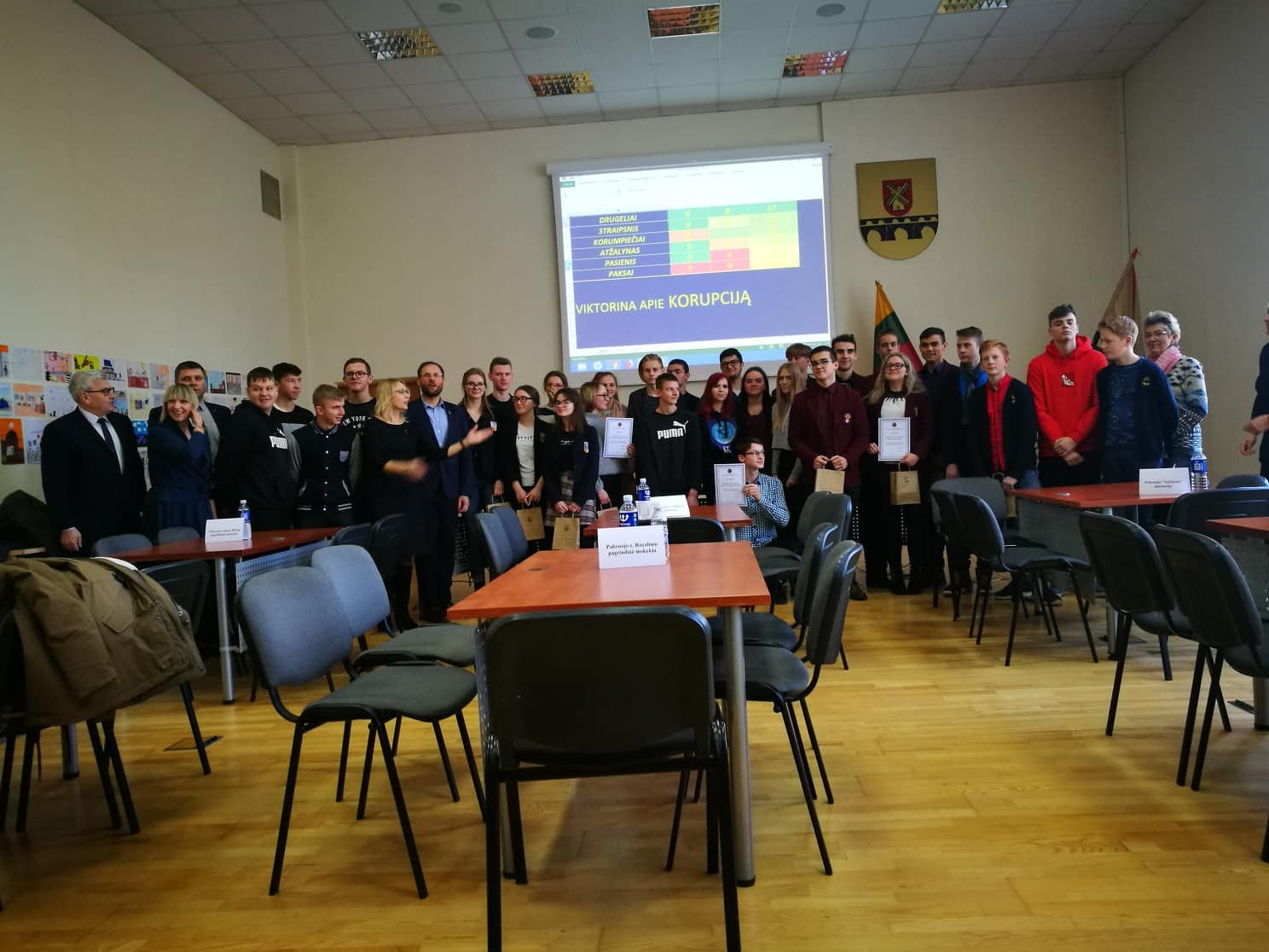 Gruodžio 11 d. „Atžalyno“ mokinių komanda išskubėjo į Pakruojo rajono savivaldybę, kur dalyvavo viktorinoje, skirtoje paminėti Tarptautinę antikorupcijos dieną. Mokiniai pasitikrino žinias apie korupcijos apraiškas ne tik šiais laikais, bet ir tarpukario Lietuvos laikotarpiu, daugiau sužinojo apie STT veiklą. Dalyvius pasveikino Pakruojo rajono savivaldybės administracijos direktorė Ilona Gelažnikienė, mero pavaduotojas Virginijus Kacilevičius, Švietimo skyriaus vedėja Irena Mažulienė. Patirtimi apie darbo ypatumus dalijosi Specialiųjų tyrimų tarnybos Šiaulių valdybos viršininkas Vaidas Pupelis ir STT Šiaulių valdybos Korupcijos prevencijos poskyrio viršininkė Rita Šikšnienė. Anot gimnazistų, tokie renginiai skatina domėtis korupcijos prevencija.