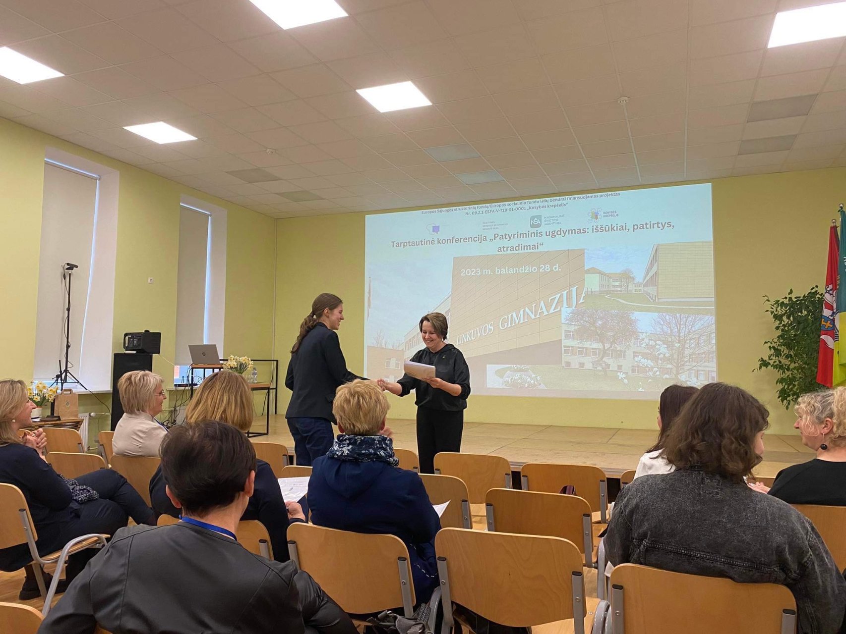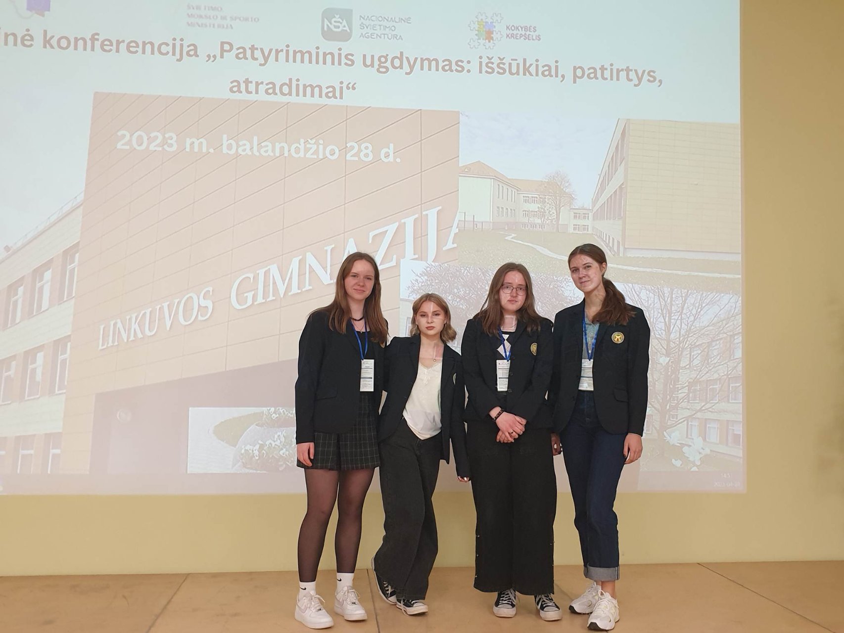Balandžio 28 d. grupelė gimnazijos mokinių, biologijos mokytoja Daiva Makauskienė ir direktoriaus pavaduotoja ugdymui Rasa Augustinaitienė dalyvavo Pakruojo r. Linkuvos gimnazijos bendruomenės organizuotoje tarptautinėje konferencijoje „Patyriminis ugdymas: iššūkiai, patirtys, atradimai“. Konferencijoje ne tik klausėme Vilniaus universiteto mokslininkų dr. Ingos Matijošytės, dr. Pauliaus Tamošiūno pranešimų, išgirdome, kaip patyriminis ugdymas vyksta kitose mokyklose, be to, mūsų gimnazistai pristatė savo patyriminės veiklos rezultatus. I klasės mokinės Urtė Sirusaitė ir Andrėja Kondrotaitė skaitė pranešimą „Popieriaus perdirbimas“, antrokės Greta Gudaitė ir Skaistė Vaičiulytė pristatė savo tiriamąjį darbą „Atžalyno“ gimnazistas 2023 m.“ (nuoroda https://youtu.be/5Ea3rralrZw ). Trečiokas Vincentas Lekas parengė stendinį pranešimą „Kam organizmams švytėti?“. Mokinių darbų vadovė biologijos mokytoja metodininkė Daiva Makauskienė.