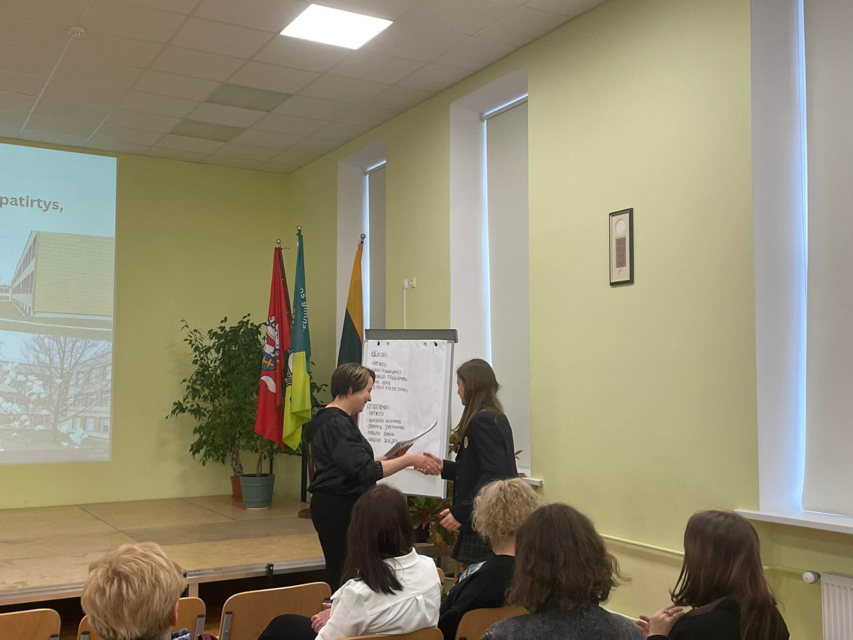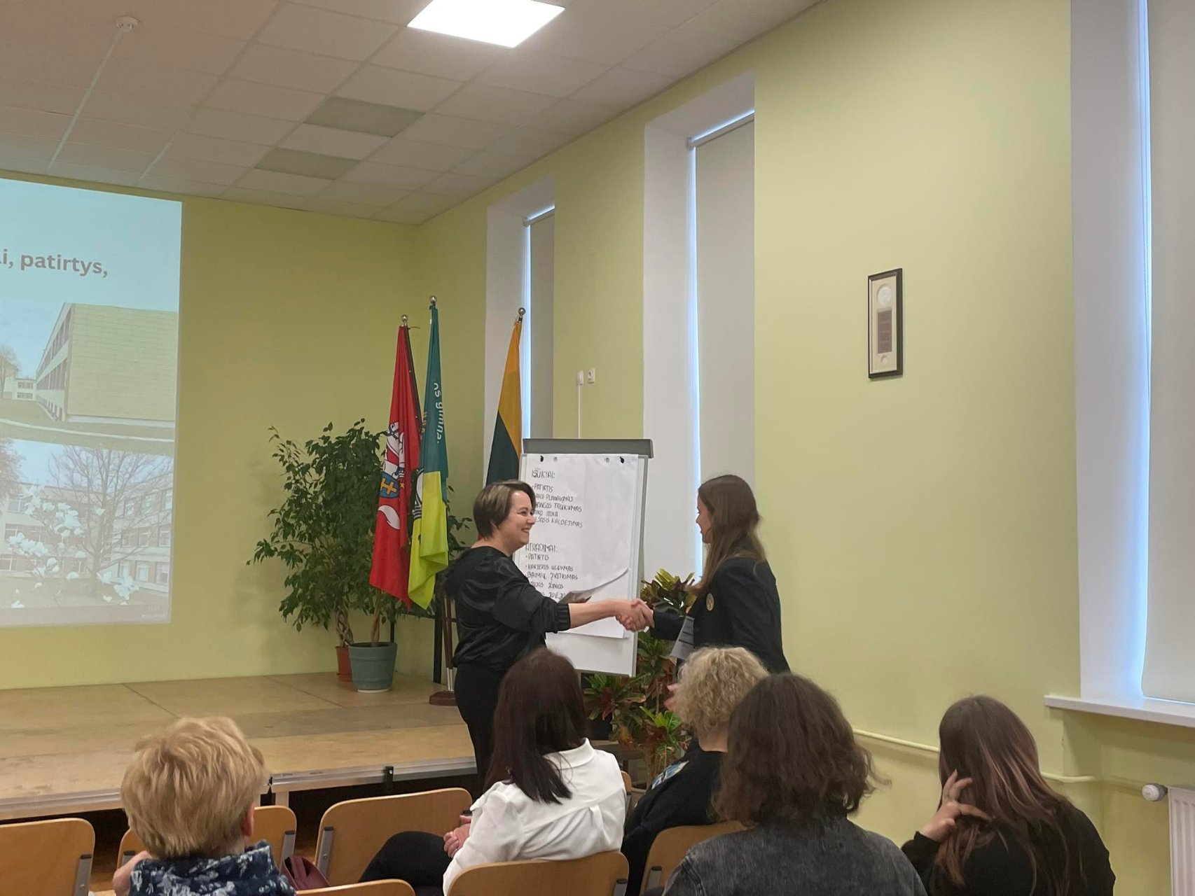 Balandžio 25 dieną gimnazijoje svečiavosi švietimo programų koordinatorė Ingrida Vilkienė. Susitikime dalyvavo I-II klasių gimnazistų grupelė, istorijos mokytoja Gražina Kairiūkštienė, direktorė Asta Valuntienė ir Pakruojo Juozo Paukštelio viešosios bibliotekos vyresnioji bibliotekininkė Gitana Maasienė. Pirmokės gimnazistės pristatė savo sukurto laikraštuko „Žydai Pakruojyje“ pirmąjį numerį ir skaidres apie genocidą Pakruojo krašte. Gabija padeklamavo savo kūrybos eilėraštį apie žydus. Lektorė Ingrida supažindino su Pakruojo gyventojais žydais, jų likimu genocido metais ir lietuvių bandymais juos išgelbėti. Be to, papasakota ir apie Arūno Bubnio knygą „Holokaustas Lietuvos provincijoje 1941 metais“. Paskaitos pabaigoje žiūrėjome trumpametražį filmą apie žydų gelbėjimą „Porcelianinis vienaragis“. Labiausiai įsiminė lektorės paminėtas lietuvių ir žydų mokyklos skirtumas. Anot jos, žydų vaikai nebijo klausti. „Kvailų klausimų nebūna. Žmonės, kurie sako, kad klausimas kvailas, negeba į jį atsakyti“, – teigė viešnia. Esame dėkingi Ingridai Vilkienei už įsimintiną paskaitą ir didžiuojamės gimnazistėmis, kurios parengė puikius pristatymus apie Pakruojo žydus.