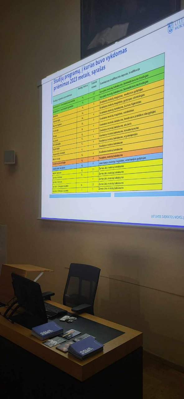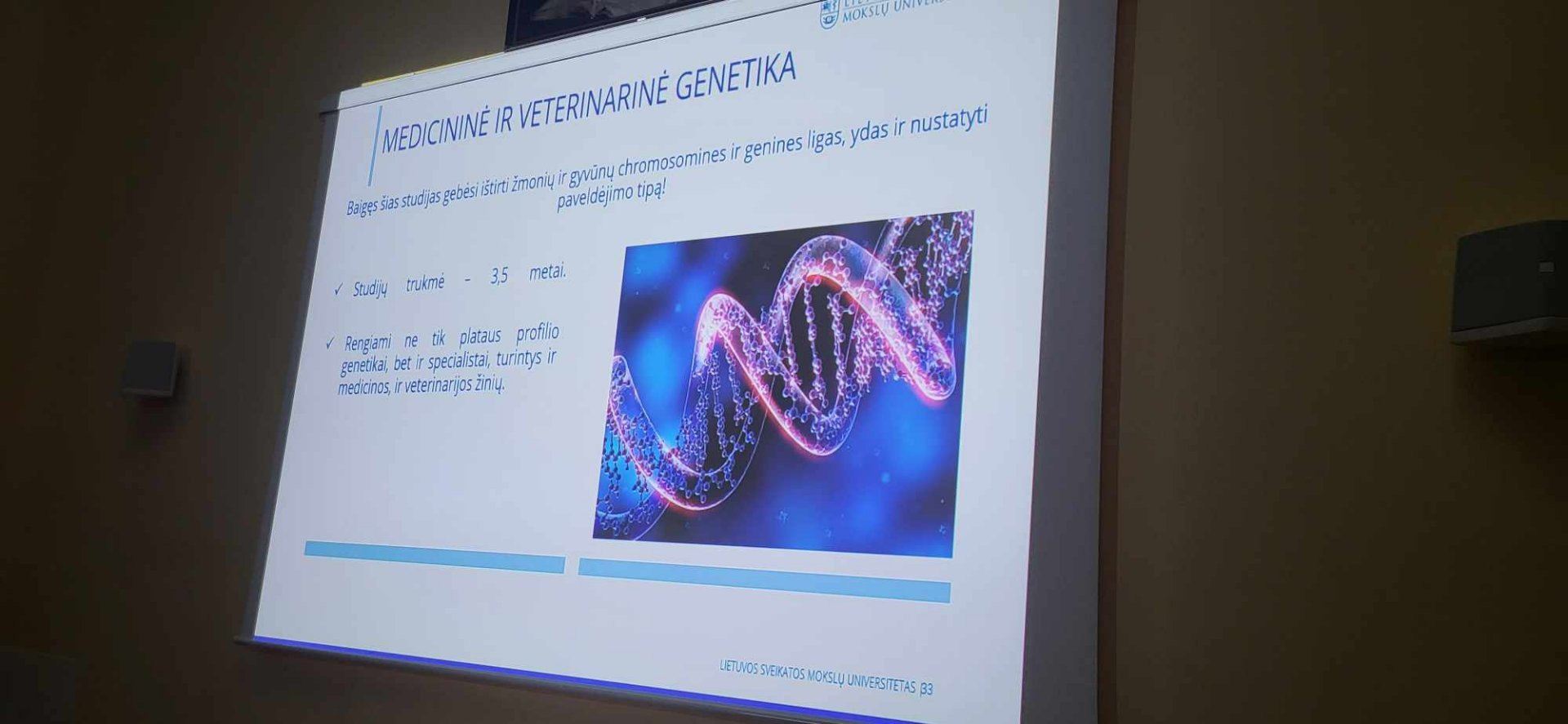 Vasario 6 d. gimnazistai, svajojantys apie medicinos, veterinarijos, odontologijos studijų kryptis, smalsiai nusiteikę išvyko į Lietuvos sveikatos mokslų universitetą. Nuvykusius mokinius pasitiko studentai baltais chalatais, o auditorijų duris puošė skambūs medicinos terminai, kuriuos kol kas dar sudėtinga suprasti. Gimnazistai lankėsi Anatomijos muziejuje, kurio eksponatai ir istorijos apie juos įsirėžė į atmintį. Pavyzdžiui, buvo galima išvysti skeletus žmonių, kurie gyvi būdami apsisprendė, kad po jų mirties kūnų likučius galės matyti besidomintys medicinos studijomis, be to, yra ir tikrų mumijų bei atskirų kūno dalių, o struktūra ir vidaus organų dalys išsaugotos naudojant specialų tirpalą. Vėliau mokiniai klausėsi lektoriaus Lino Šablinsko paskaitos apie LSMU studijų programas, buvo supažindinti su 2023 metų mažiausiais stojimo konkursiniais balais, išgirdo, kokios numatytos stojimo į universitetą naujovės.