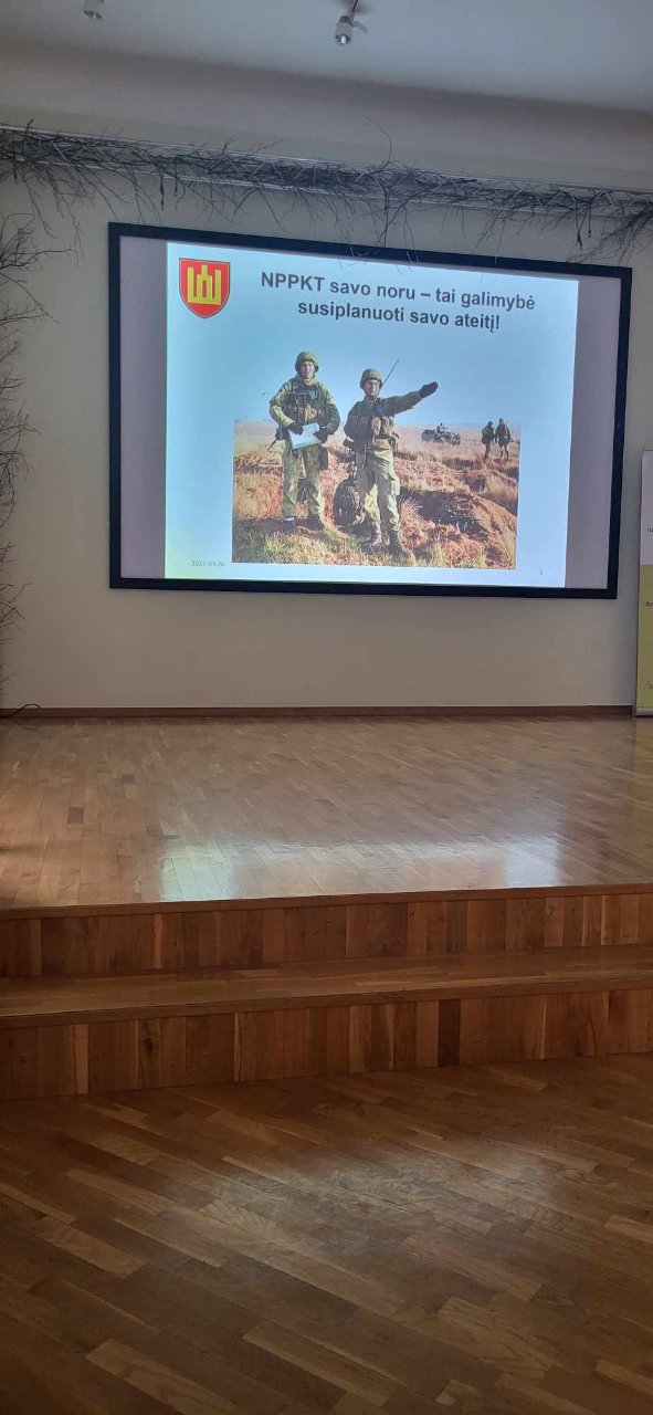Kovo 20 d. Pakruojo „Atžalyno“ gimnazijoje lankėsi Lietuvos kariuomenės Karo prievolės ir komplektavimo tarnybos Šiaulių regiono Karo prievolės ir komplektavimo skyriaus vyriausioji verbuotoja kapitonė Ieva Mocienė ir verbuotojas seržantas Arūnas Navickis. Kapitonė Ieva mokiniams pristatė krašto apsaugos sistemą ir visiems priminė, kad saugumas Lietuvoje priklauso nuo jos kariuomenės. Lietuvos kariuomenės atstovai gimnazistams pasakojo apie nuolatinę privalomąją pradinę karo tarnybą, galimybes joje, krašto apsaugos savanorių pajėgas ir kodėl verta tapti kariu savanoriu. Gimnazistai ne tik susipažino su profesionalaus kario profesija, bet ir sužinojo daug įdomių faktų apie studijas Generolo Jono Žemaičio Lietuvos karo akademijoje. Karininkai aptarė ir itin aktualią temą mokiniams – atlyginimus ir stipendijas. O neapsisprendusiems, kokią profesiją rinktis baigus gimnaziją, rekomendavo rinktis savanorišką karo tarnybą, kuri atveria platesnes galimybes renkantis studijas ne tik Generolo Jono Žemaičio Lietuvos karo akademijoje.