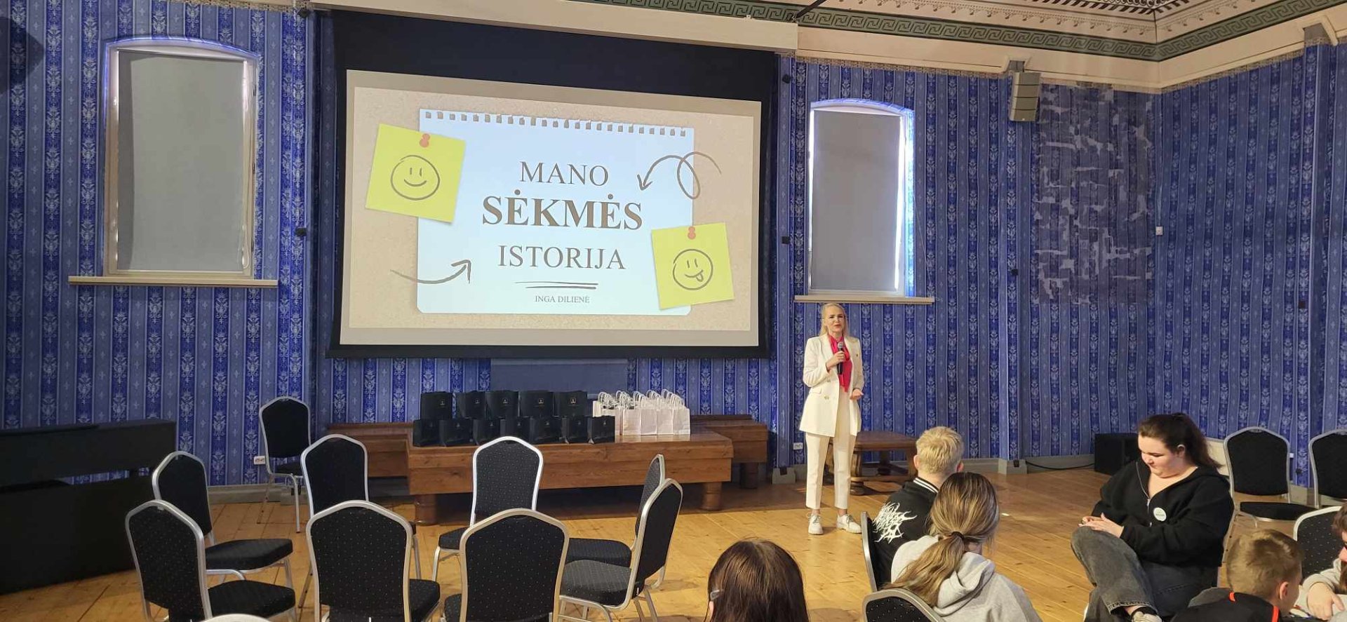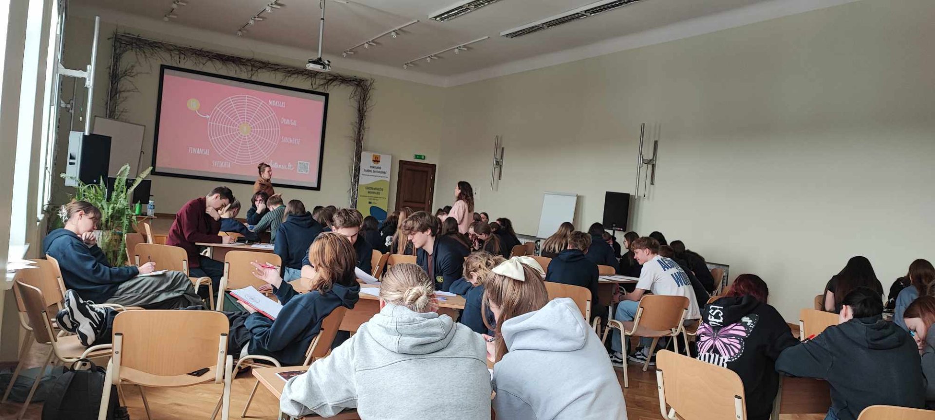 Mokiniai per pertrauką skanavo picų, o po jos dar klausėsi verslininkių Ingos Dilienės ir Andros Šakenės verslo sėkmės istorijų. Ačiū mokytojai Gražinai Gasiūnienei už pagalbą, komandų surinkimą ir gimnazistų palaikymą renginyje.