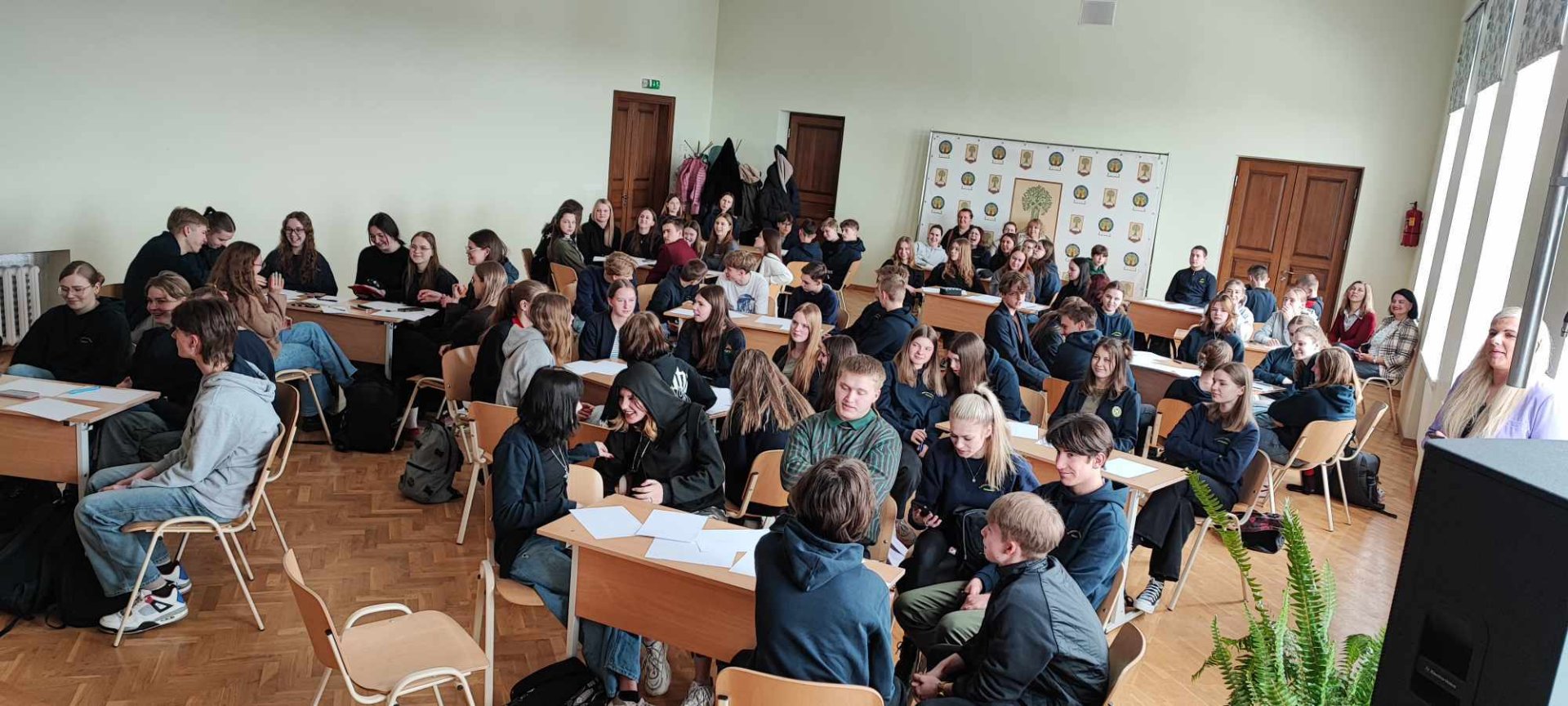 Balandžio 23 dieną Pakruojo „Atžalyno“ posėdžių ir konferencijų salėje rinkosi ne tik mūsų gimnazistai, bet ir mokiniai iš Linkuvos gimnazijos, taip pat Lygumų pagrindinės mokyklos.