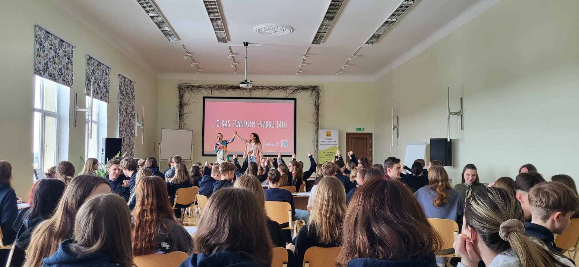 Karjeros specialisčių Eglė Uogintienės ir Eglė Valantinaitės-Krikščiūnės organizuotame renginyje „Apie tai kas tau svarbu“ dalyvavo lektorės iš Whatansu Guoda Venciūtė ir Neringa Bumbulevičė. Veiklą su jaunimu viešnios pradėjo nuo susipažinimo užduočių. Lektorių teigimu, ne tik savęs, bet ir kito pažinimas yra labai svarbi proceso dalis. Po to mokiniai kartu su Guoda Venciūte ir Neringa Bumbuleviče analizavo, kas šiandien svarbu kiekvienam, atliko kūrybines užduotis. Jauni žmonės išbandė „whatansu.lt“ sistemą, įsivertino savo galimybes, atliko prioritetų skirstymo užduotis – taip iš naujo susipažino su savimi. Pristatyta „whatansietiška“ programa sukėlė įvairių minčių, kuriomis mokiniai pasidalijo per refleksiją.