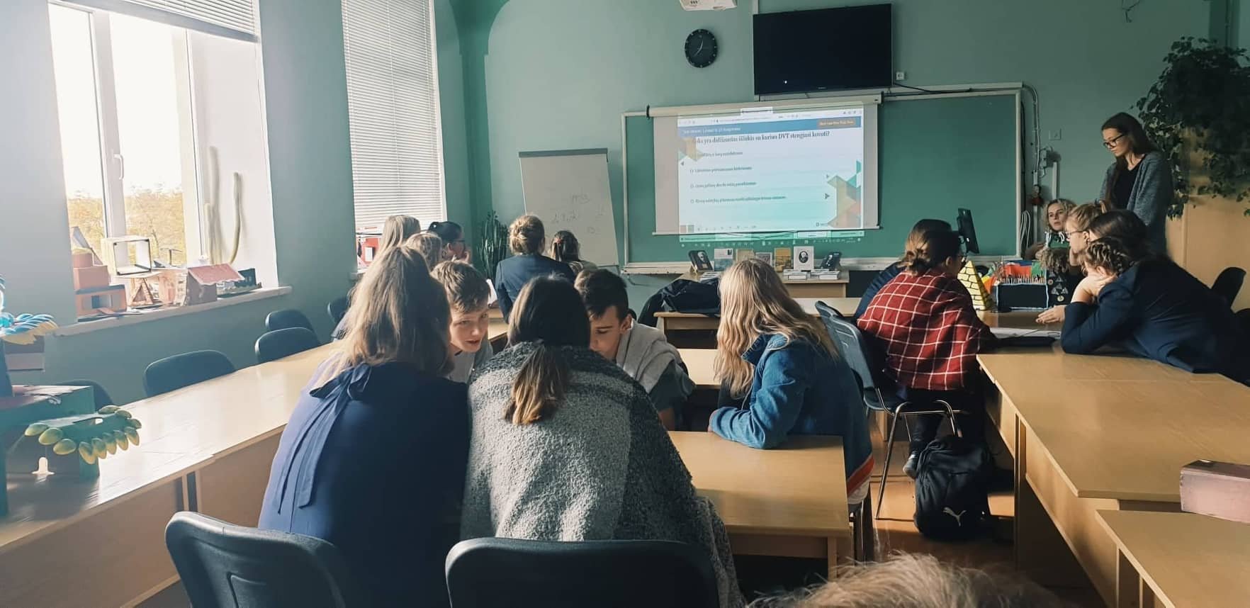 Viešnia Sonata Dedūraitė mokiniams papasakojo apie Europos solidarumo korpuso teikiamą tarptautinės savanorystės naudą, paaiškino, kaip jauni žmonės gali mokytis neformaliuoju būdu. Savanoriai Eka, Sabina ir Mertas pasidalijo savo įžvalgomis, kodėl verta rinktis tokią veiklą, pakvietė kartu pažaisti virtualų žaidimą „Kahoot“. Renginio pabaigoje Greta Jasiūnienė kalbėjo apie vietinės savanorystės galimybes.