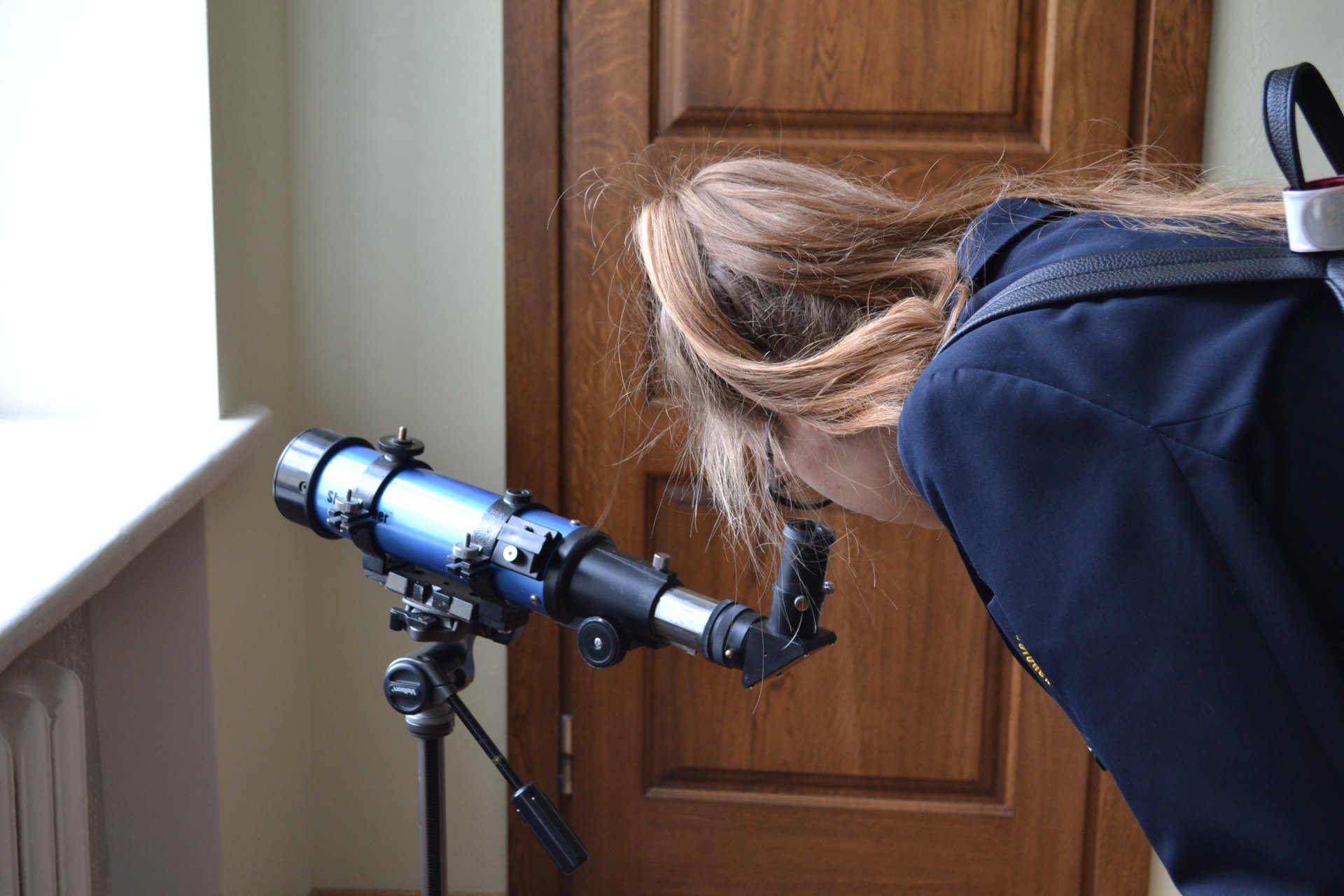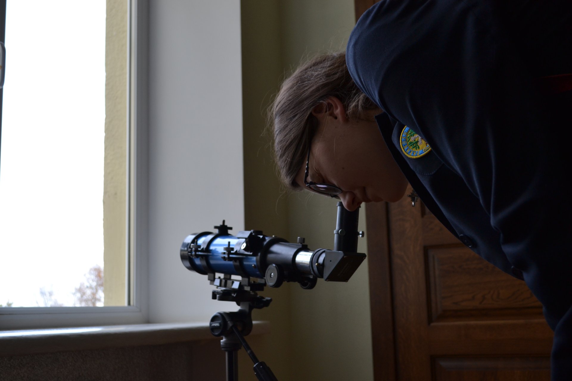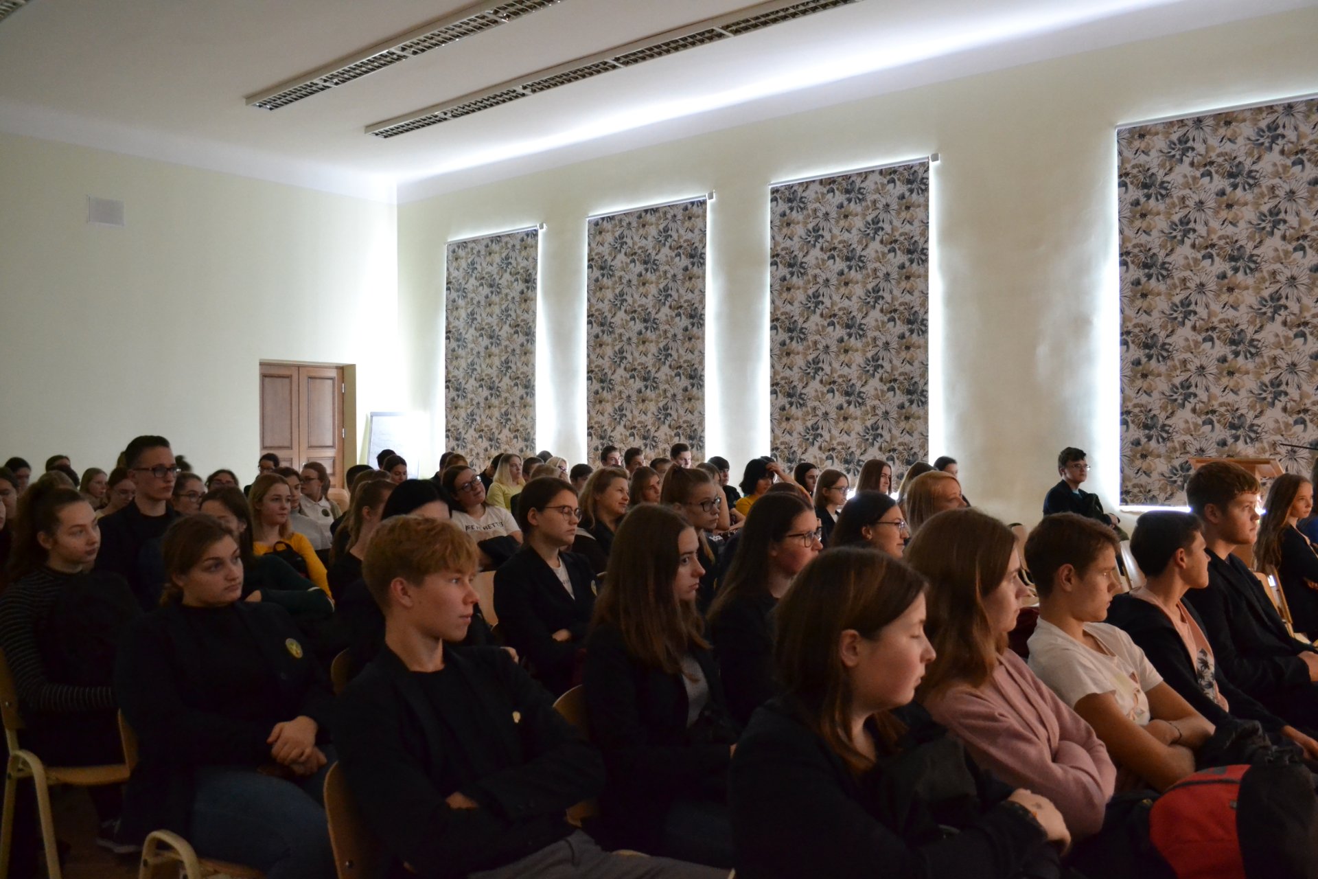 Pirmadienį posėdžių ir konferencijų salėje vyko susitikimas su Simu Šatkausku, ilgamečiu astronomijos entuziastu, praktiku, publikuojančiu astronominių stebėjimų rezultatus viešai pasiekiamose erdvėse. Mokiniai galėjo patyrinėti dangaus kūnus, palyginti jų dydžius. Jie sužinojo apie astronominius reiškinius, klausėsi visatos objektų skleidžiamų garsų. Taip pat buvo priminti šviesos greičio ir šviesmečio apibrėžimai. Baigiantis pamokai visi užsidėjo virtualiosios realybės akinius ir iš arti stebėjo planetas. Be to, gimnazistai smalsiai žiūrėjo pro teleskopą, suprato jo veikimo principą, sužinojo atstumą nuo žemės iki kosmoso. Svečias papasakojo įdomių faktų apie šventes, jų kilmę iš kosmoso. Tai buvo puiki patirtis, nes mokiniai, kupini įspūdžių, išėjo iš salės.