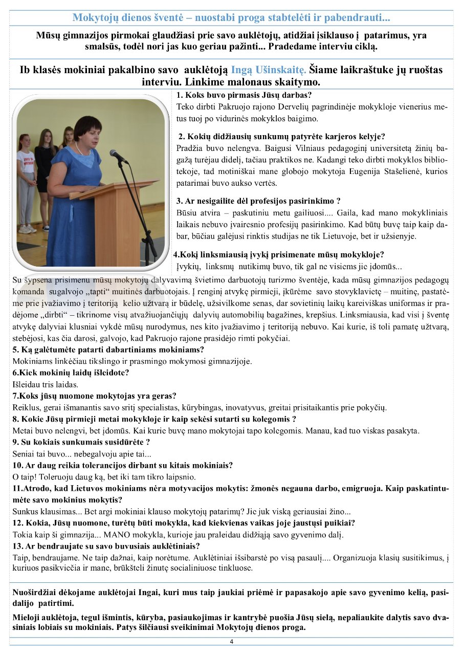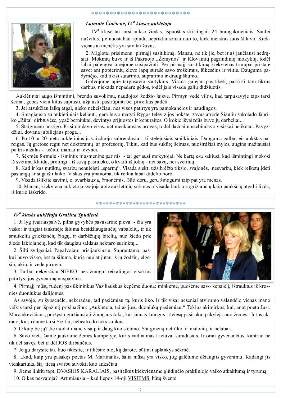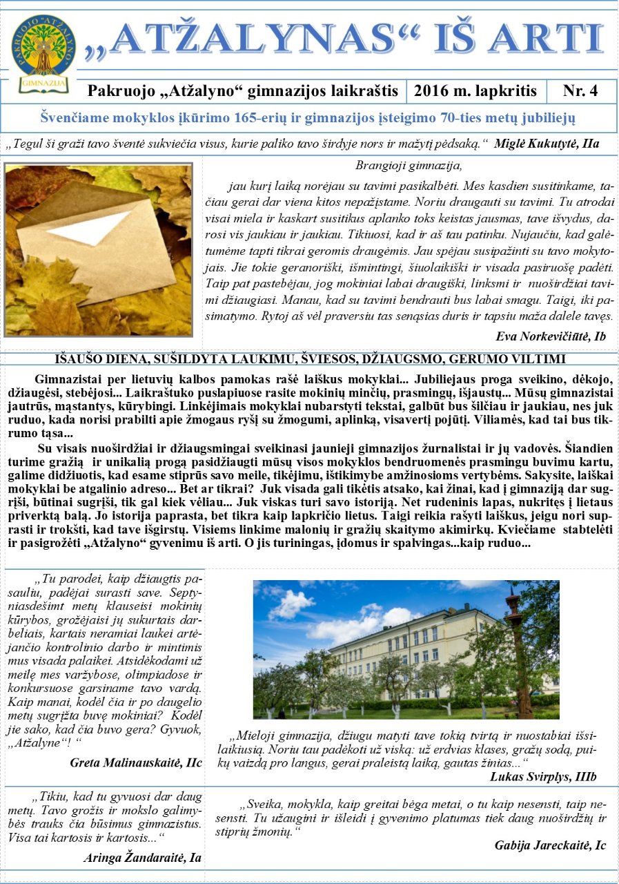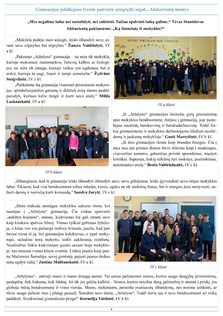 Ketvirtas numeris (Skirtas mokyklos jubiliejui paminėti):