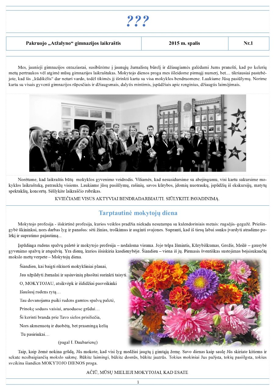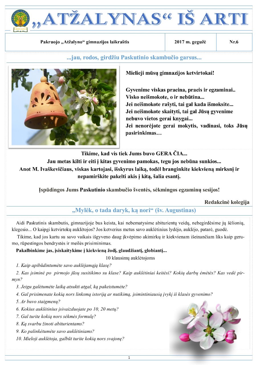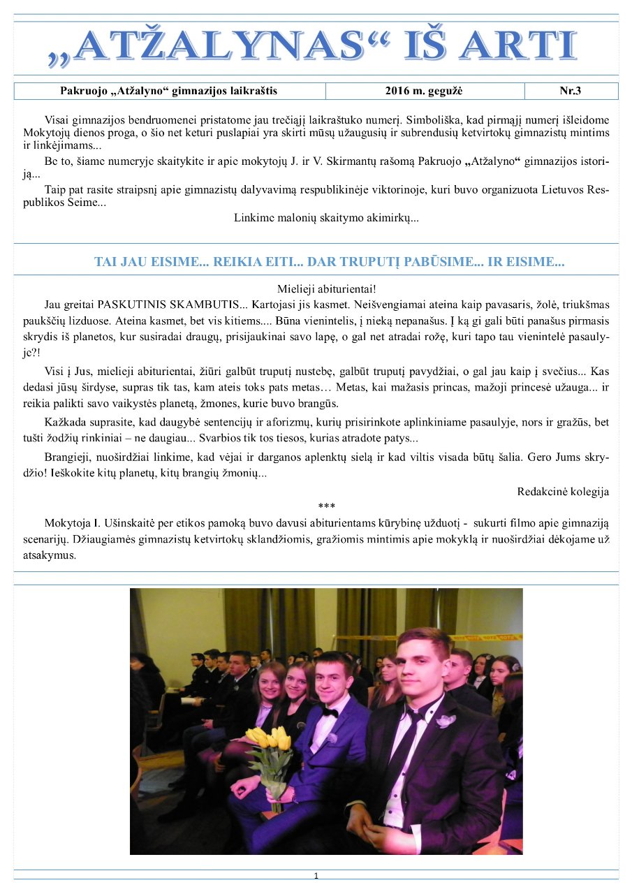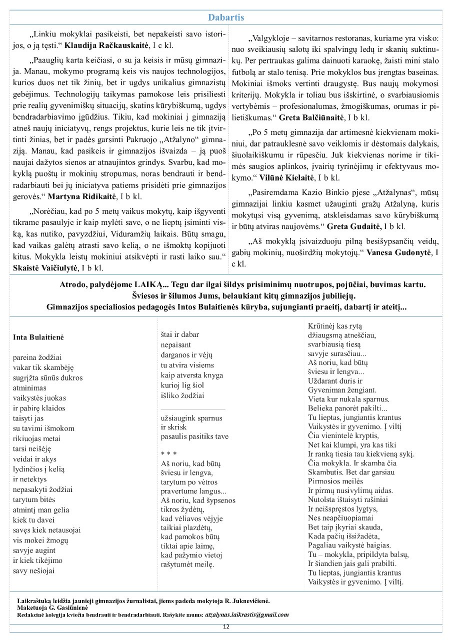 Ketvirtas numeris (Skirtas mokyklos jubiliejui paminėti):