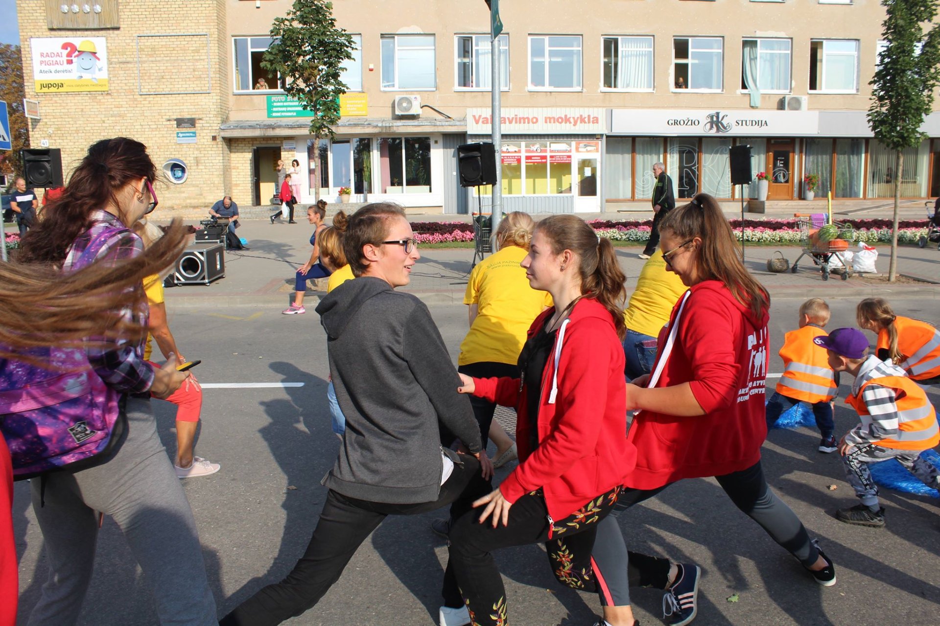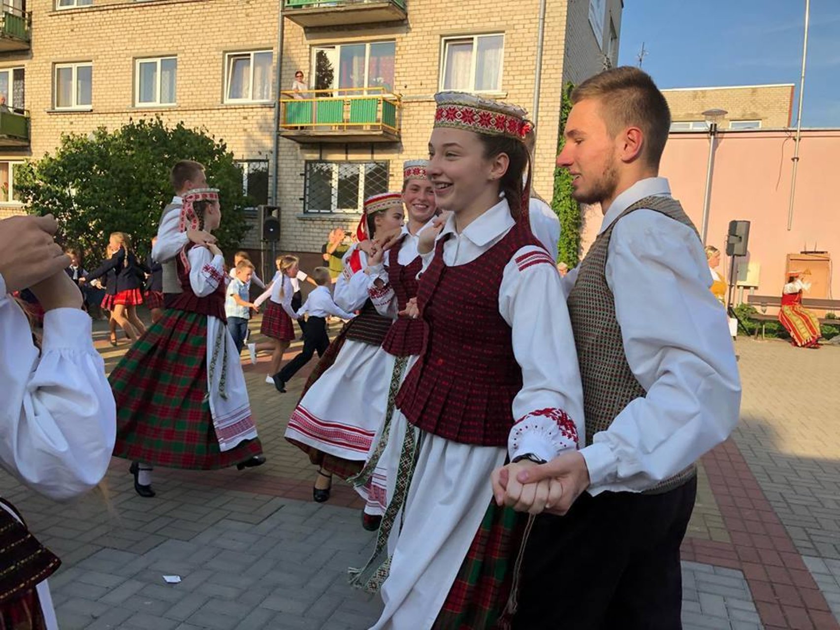 Miesto aikštė prie knygyno tiesiog dūzgė, kai visi šoko „Ciceliukę – Marceliukę“, „Abelytę“, „Trepsiuką“, smagiai trypė „Šyvį“, „Šėriau, šėriau sau žirgelį“, „Granskverą“, „Dirižablį“, sukosi šokių „Buvo dūda Vilniuj“, „Malūnėlis“, „Petkevičiaus polka“, „Suktinis “ ritmu.
