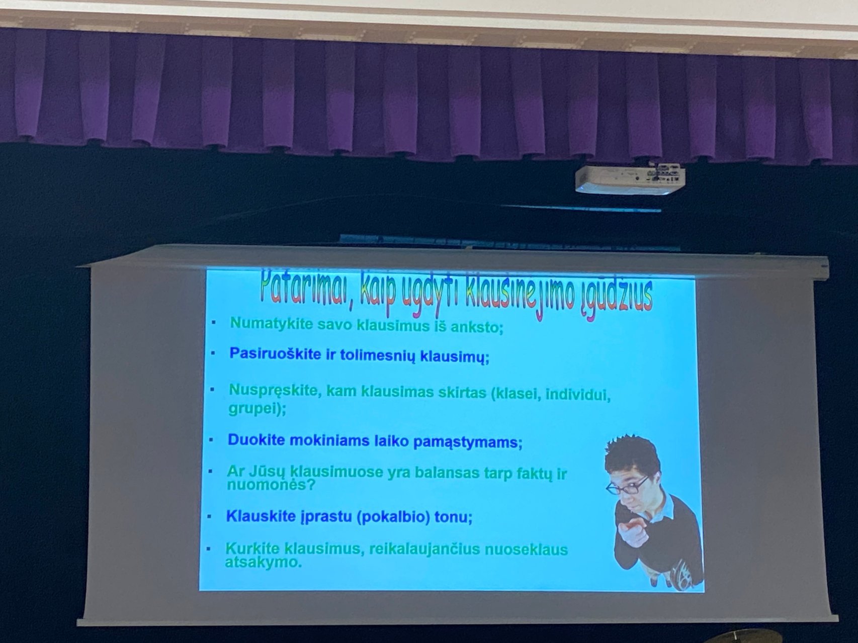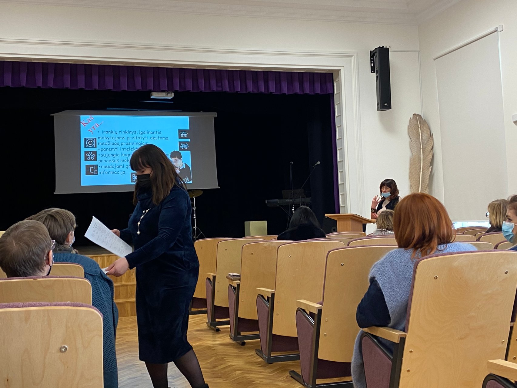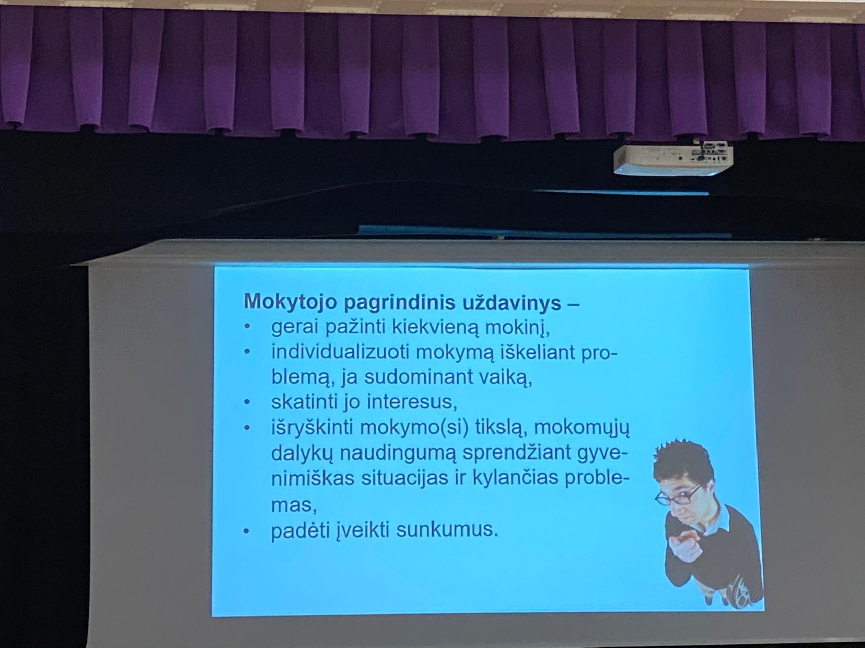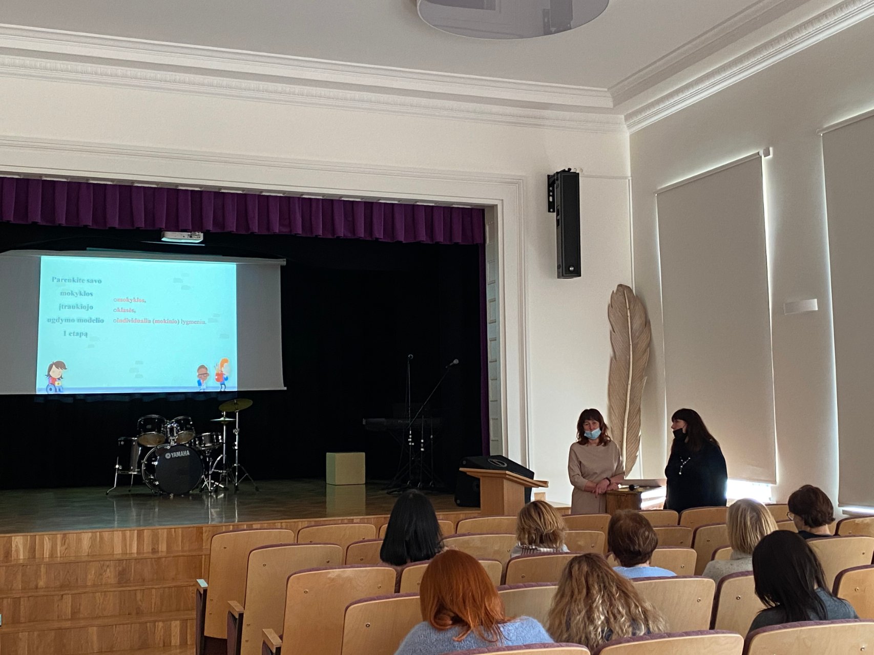 2022 m. sausio 5 d. gimnazijos mokytojai, susirinkę aktų salėje, dalyvavo Šiaulių „Sandoros“ progimnazijos specialiosios pedagogės, logopedės metodininkės Astos Kairienės ir Šiaulių Dainų progimnazijos specialiosios pedagogės ekspertės, Vilniaus universiteto Šiaulių akademijos dr. Laimos Tomėnienės seminare „Įtraukiojo ugdymo veiksnių paieška siekiant gerinti ypatingų vaikų ugdymo kokybę“. Viešnios domėjosi, kaip pedagogai supranta įtraukųjį ugdymą, aptarė įtraukties sąvoką. Be to, lektorės pateikė teorinių ir praktinių pavyzdžių, kaip pagalbos specialistai kartu su mokytojais gali organizuoti ypatingų vaikų ugdymo(si) procesą, kad mokinys patirtų sėkmę. Viešnios pasidalijo įžvalgomis, kaip galima skirtingais būdais mokiniams pateikti informaciją, akcentavo, kad ypač tam tinka mąstymo žemėlapiai, parodė įvairių jų pavyzdžių. Beje, buvo įdomu išgirsti apie universalų dizainą švietime. Ne vieną kartą akcentuota, kad ugdant skirtingų gebėjimų mokinius labai svarbu gerai juos pažinti. Gimnazijos direktorė Asta Valuntienė nuoširdžiai padėkojo lektorėms už patirties sklaidą.