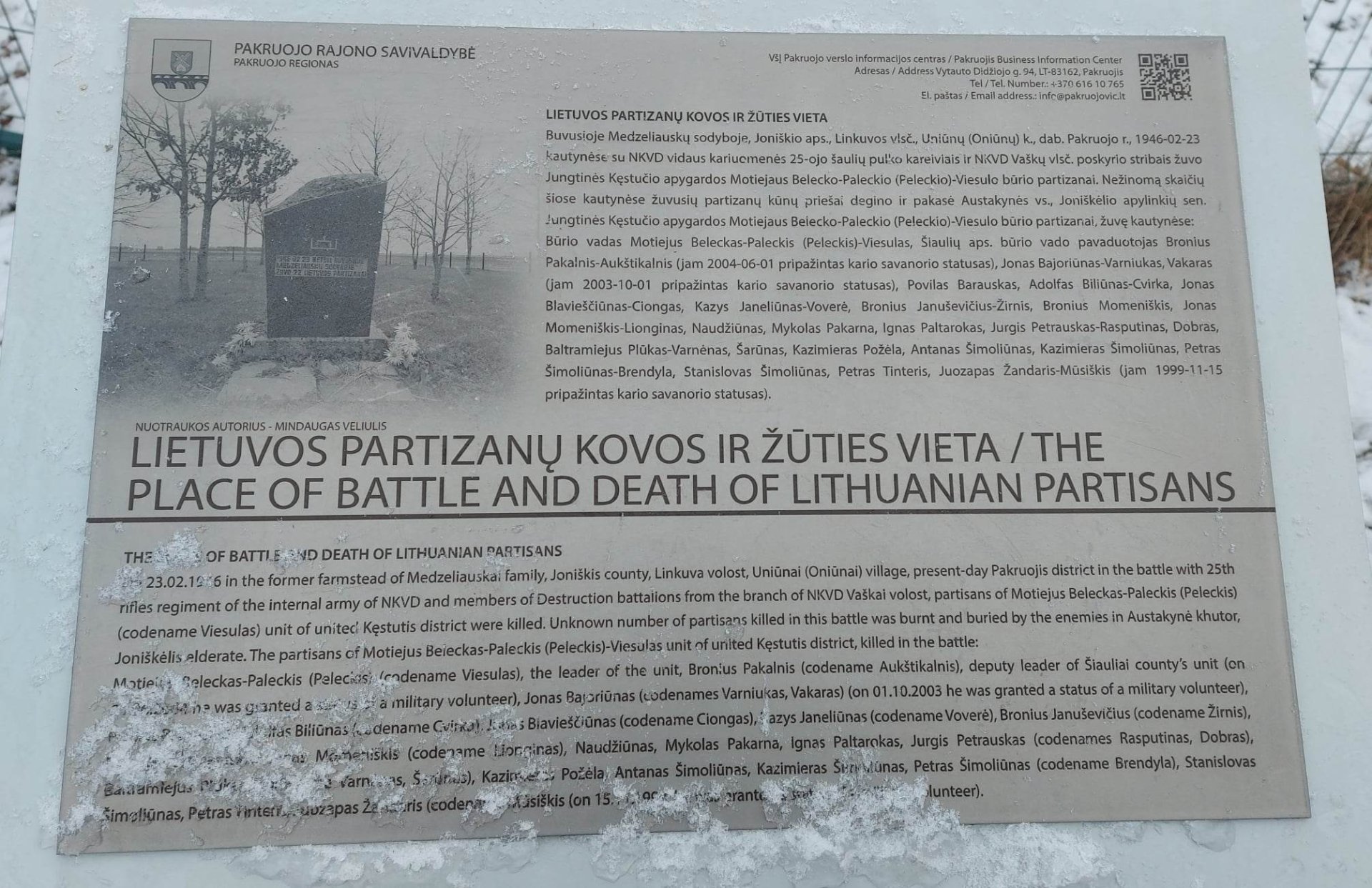 Nuožmios kautynės užtruko pusę dienos, kol užteko šovinių. Kai priešai uždegė medinį namą, daug laisvės kovotojų žuvo. Iki galo priešinęsi ir kelis kartus atsisakę pasiduoti vyrai tarsi paliudijo, kad tėvynė jiems svarbiau už gyvybę. Dabar mūšio vietoje pasodinti 22 ąžuoliukai žuvusiems partizanams atminti. Lankydamiesi kovos vietoje, pajutome tikrą partizanų dvasią, kadangi iki mūšio vietos žygiavome sniego ir ledo taku.