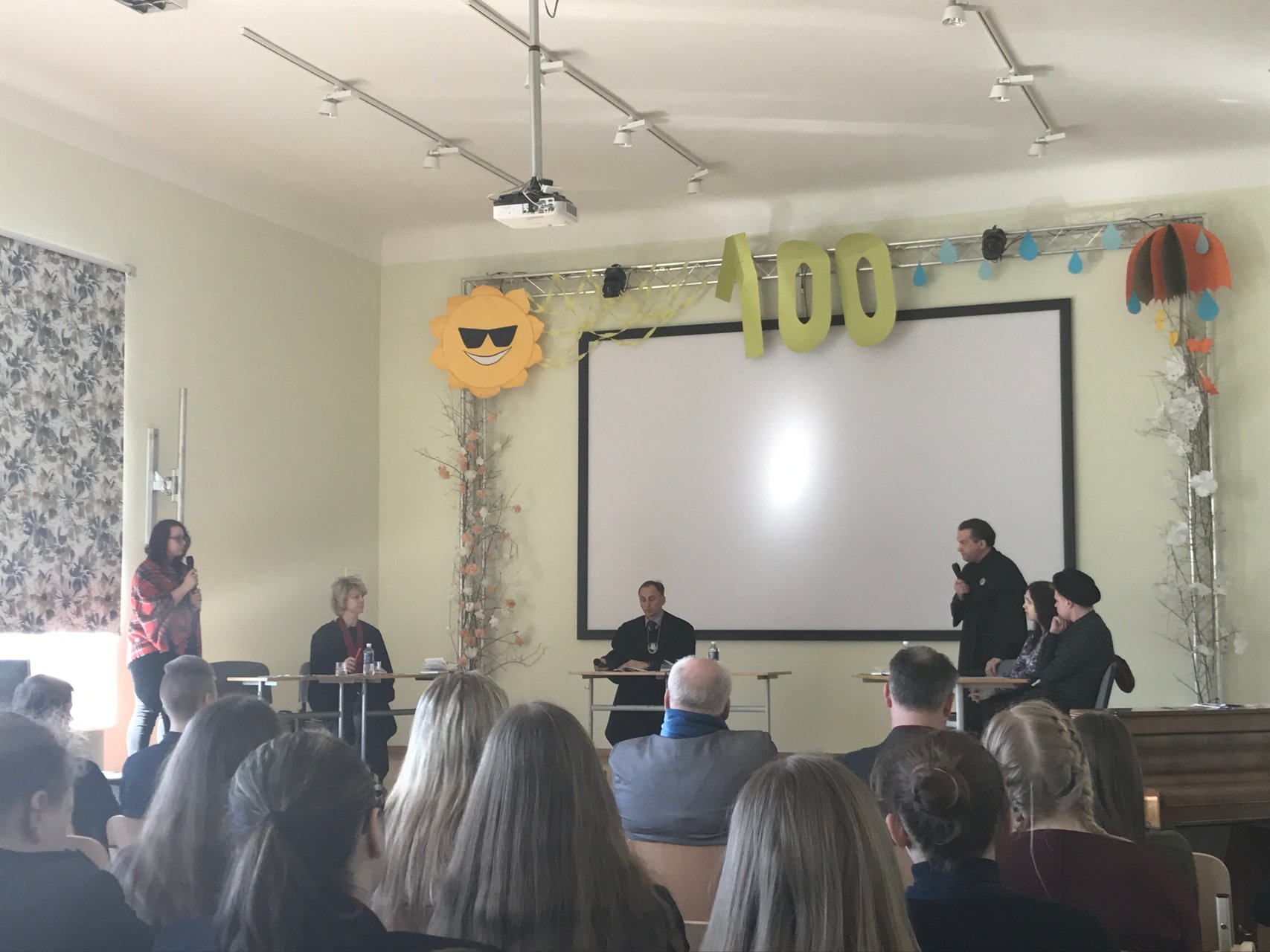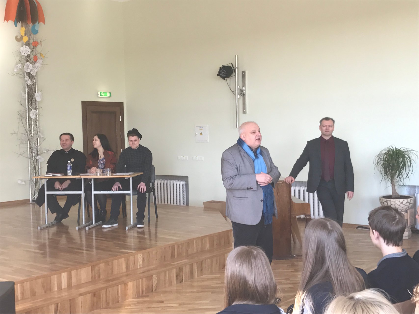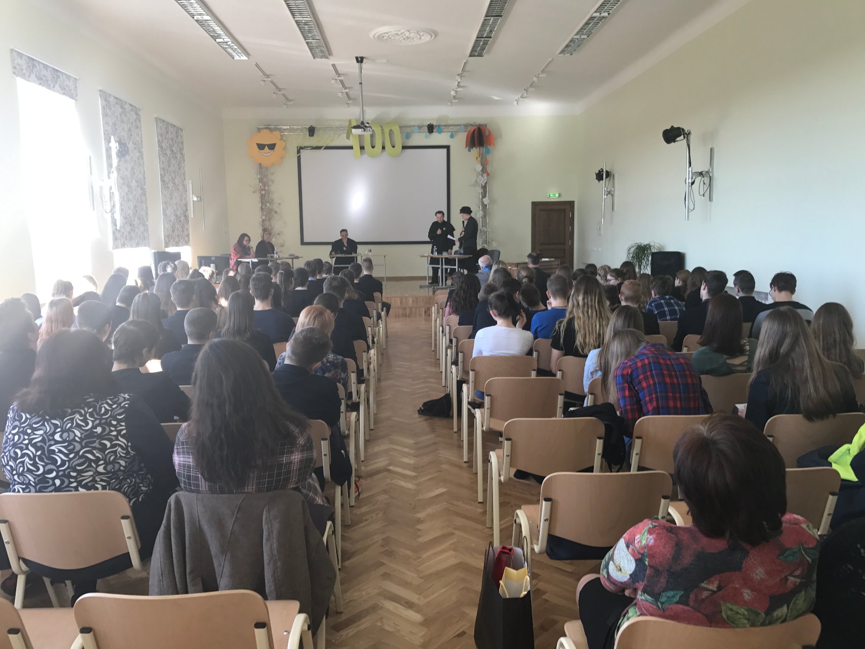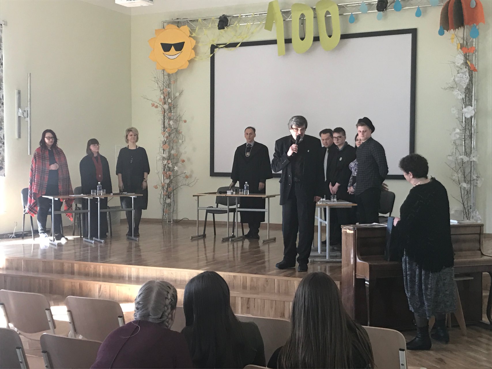 „Stot, teismas eina!“ – išgirdo mokiniai, galbūt pirmą kartą dalyvaujantys „literatūriniame teisme“. Į gimnaziją 2017-03-24 atvyko Mykolo Romerio universiteto Teisės fakulteto dėstytojai ir studentai, kurie vadovaudamiesi Lietuvos Respublikos baudžiamuoju kodeksu „teisė“ Žemaitės apsakymo „Marti“ Katrės skriaudikus. Prodekanė (studijoms) prof. dr. Snieguolė Matulienė buvo prokurorė, teisėjo vaidmuo atiteko Viešosios teisės instituto lektoriui Žydrūnui Plytnikui, lektorius dr. Pavelas Kujalis buvo senosios Vingienės ir Vingių Jono advokatas, Teisės fakulteto studentai vaidino Vingių Jonuką ir Driežienę. Teisme buvo nagrinėjama baudžiamoji byla Nr. 002-2016, kurioje ponia Vingienė kaltinama pagal Lietuvos Respublikos baudžiamojo kodekso 154 str. 1 dalį už tikrovės neatitinkančios informacijos apie Driežų Katrę paskleidimą, dėl ko buvo pakirstas Katrės pasitikėjimas savimi. Taip pat buvo kaltinamas ir Vingių Jonas pagal Lietuvos Respublikos baudžiamojo kodekso 144 str. už savo žmonos Driežų Katrės palikimą be pagalbos, kai grėsė pavojus jos gyvybei. Kūrinys virto baudžiamąja byla, gimnazistai galėjo stebėti, kaip vyksta teismo procesas, pamąstyti, įsiklausyti, mokytis argumentuotai ginti savo poziciją. Vėliau rinkodaros ir priėmimo skyriaus vedėjas Saulius Bugailiškis pristatė MRU, o drąsiausi gimnazistai galėjo užsivilkti mantijas, įsijausti į prokuroro bei advokato vaidmenis ir sakyti baigiamąsias kalbas. Turėjome unikalią galimybę stebėti teisinio proceso eigą, prisiekusieji buvo patys gimnazistai, kurių vis dėlto neįtikino sklandi advokato kalba. Mokiniai nubalsavo, kad Vingių šeima kalta, jos abejingumas pražudė Katrę. Sprendimas buvo priimtas. Džiaugiamės kartu su pirmokais ir antrokais gimnazistais, kad galėjome patirti daug įdomių atradimo akimirkų ir dalyvauti teisiniame procese. Dėkojame svečiams iš MRU už galimybę kitaip pažvelgti į kūrinį.