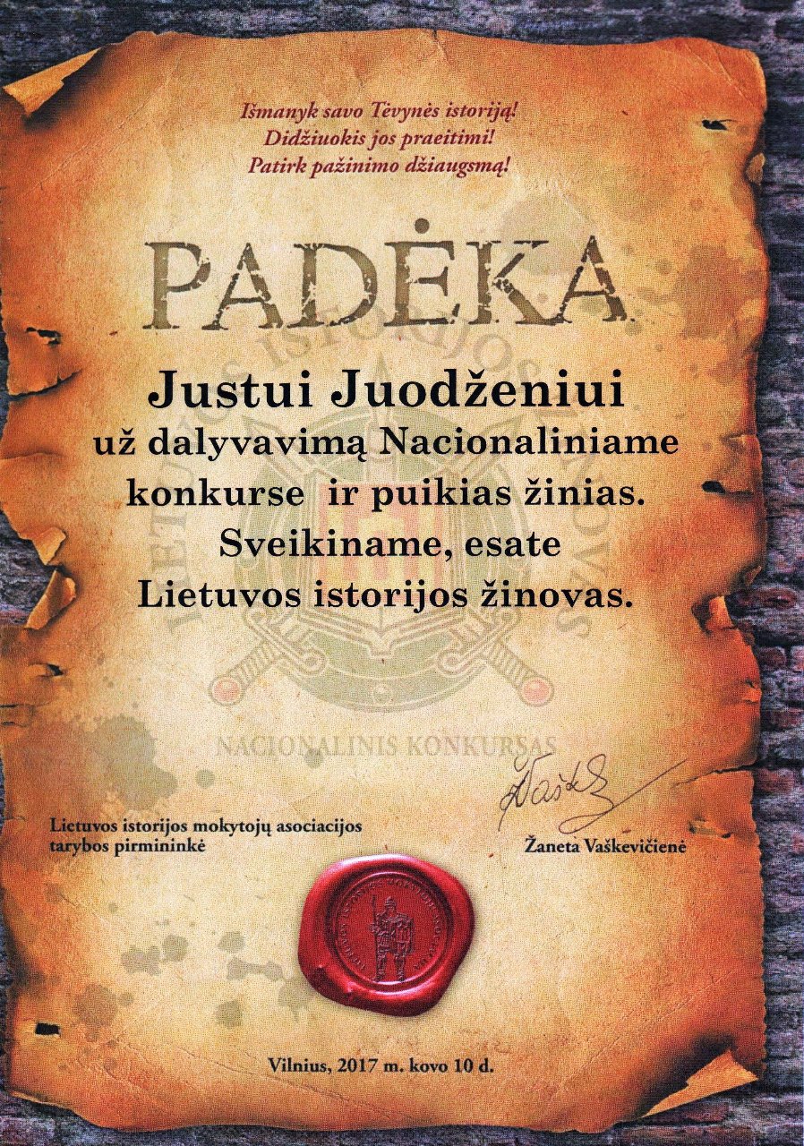 2017- 03-17 vyko teisinių žinių konkursas „Temidė“. Mūsų IIIb klasės gimnazistų komanda „Perkūnas“ užėmė III vietą rajone. Džiaugiamės šauniais dalyviais: Mindaugu Jarecku, Dovydu Levinsku, Matu Vyšniausku, Luku Svirpliu, Deividu Zaleskiu.