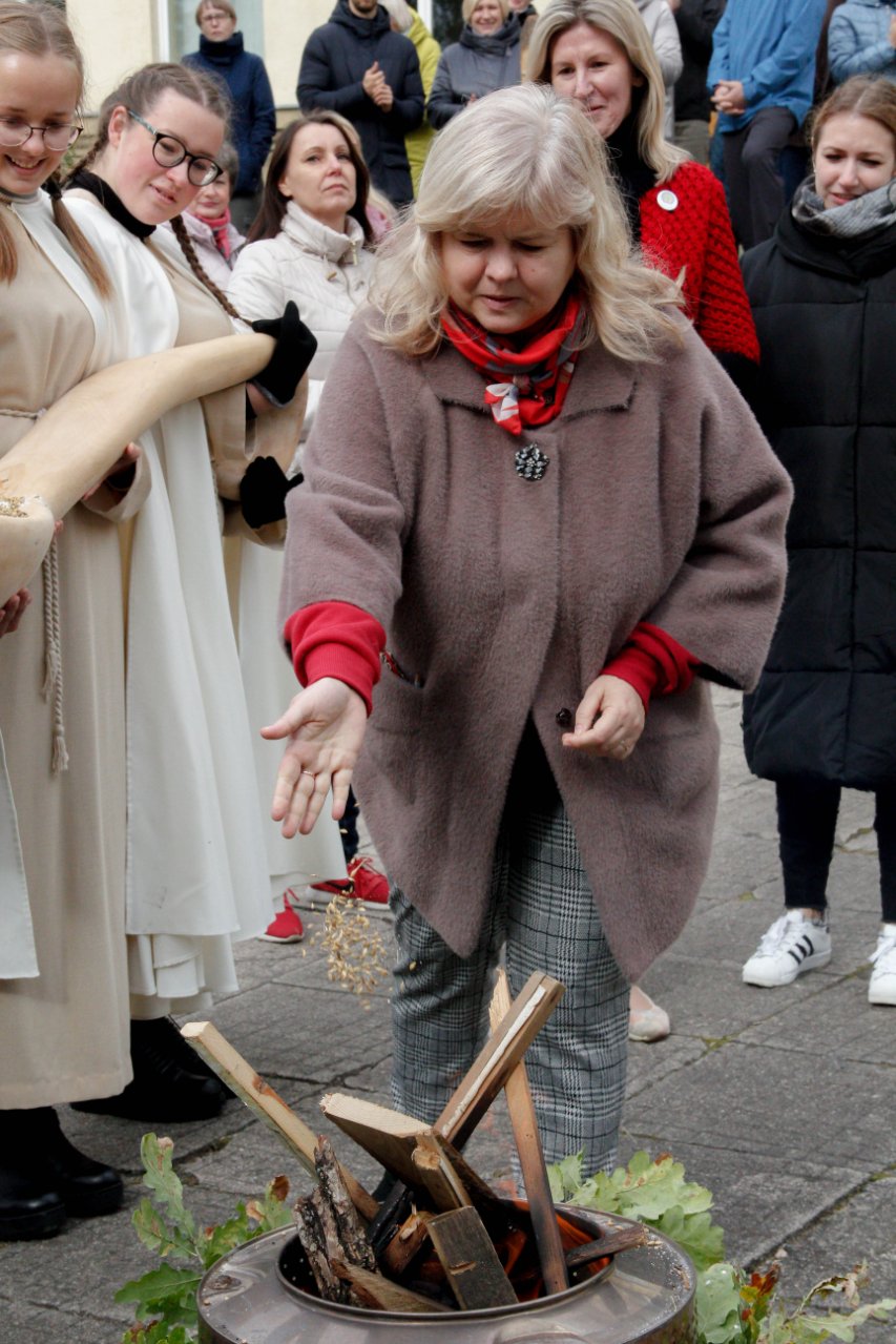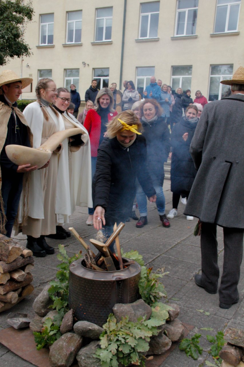 Baltų vienybės dieną išgyvenome bendrystės jausmą Sveikinimo žodį tarė šventės iniciatorė, istorijos mokytoja Gražina Kairiūkštienė. Visos klasės persikūnijo į įvairias baltų gentis, paruošė tradicinių patiekalų. Vaidilutės lydėjo oriai žengiančius prūsus, sėlius, jotvingius, aukštaičius, žemaičius, lietuvius, sūduvius, latgalius, Rytų galindus, skalvius, žiemgalius, kuršius. Kiekvienoje Baltų šventėje buvo uždegama ugnis kaip dievybės simbolis, pas mus iškilmingoms apeigoms vadovavo technologijų mokytojas Egidijus Impolis, pakvietęs direktorę ir klasių auklėtojas tarti palinkėjimą ir dar kaitriau įžiebti ugnį metant į ją saują grūdų ir druskos. Linkėta bendrystės, vienybės, tarpusavio supratimo, gyvenimo čia ir dabar...