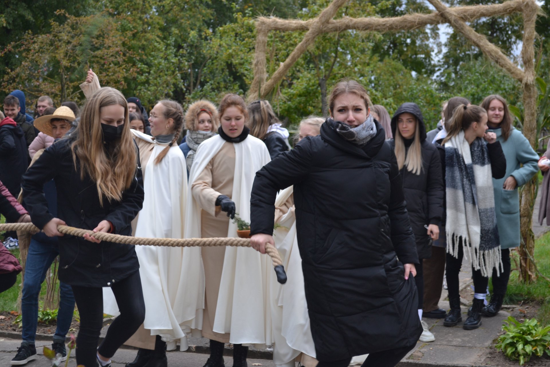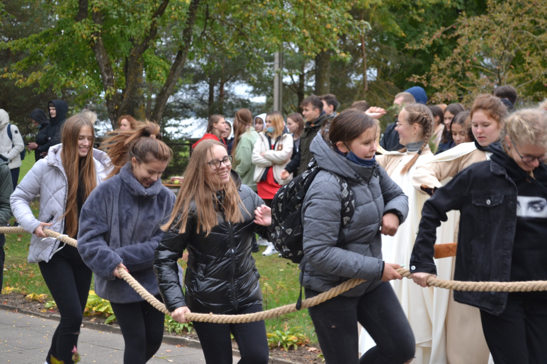 Renginyje buvo daug veiksmo. Pirmokams surengtos baltų papročių kupinos „krikštynos“, po kurių mokiniai jau tikrai įsiliejo į mūsų bendruomenę. Pavėluotas „krikštas“ laukė ir antrokų, nes pernai renginys negalėjo vykti dėl pandemijos. „Pakrikštyta“ ir naujoji gimnazijos direktorė Asta Valuntienė, kuriai reikėjo įveikti ir vieną išbandymą. Priesaikos tekstą skaitė ir gimnazijos vadovei jį įteikė mokinių prezidentė, abiturientė Sandra Jurytė, iš vaidilučių rankų – simbolinė atminimo dovanėlė ir baltų kultūros ženklas, o technologijų mokytojas Egidijus Impolis direktorei užkabino medžio dirbinį, priminsiantį šią dieną. Visi „pakrikštytieji“ buvo apdovanoti atminimo medaliais. Juos technologijų mokytojui Egidijui Impoliui pagaminti padėjo abiturientas Joris Hyovon Vaicekauskas ir IĮ „Laukinis ragas“ direktorius Gražvydas Jokantas. Vėliau prasidėjo genčių žaidynės. Dalyvius traukte traukė žaidimas ripka, kurį žaisti mokė Panevėžio rajono Ėriškių kultūros centro komanda. Gimnazistai galėjo išbandyti įvairias rungtis: šaudymą iš lanko, petankę, smiginį, galynėjimąsi su maišais, futbolą kitaip ir virvės traukimą. Taip pat žaidėjai gurkšnojo arbatą, šildėsi prie laužo. Renginyje skambėjo lietuvių liaudies dainos, užbūrė magiškas Pakruojo kultūros centro muzikanto Gintauto Gvazdausko armonikos ir technologijų mokytojo, tautodailininko Egidijaus Impolio meistriškai valdomų skrabalų skambesys.
