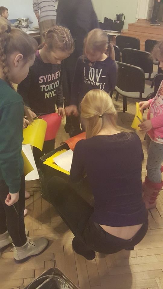 Po to antrokai kūrė vaidinimus apie robotą ir peteliškę, jiems padėjo teatrą lankantys ketvirtokai gimnazistai. Virė smagus darbas: vieni iš popieriaus klijavo robotą, kiti ėmėsi meistrauti peteliškę, treti – net šikšnosparnį. Vėliau prasidėjo vaidinimas, į kurį noriai įsitraukė ne tik mažieji, bet ir teatrą lankantys abiturientai bei antrokės Neringa L. ir Otilija Č., jaunosios gimnazijos žurnalistės, kurios dalijasi su jumis savo įspūdžiais ir kviečia pasigrožėti akimirkomis, kaip „Žemynos“ mokinukai džiaugėsi pažintimi su teatro kūrybinėmis dirbtuvėmis... Buvo smagu...