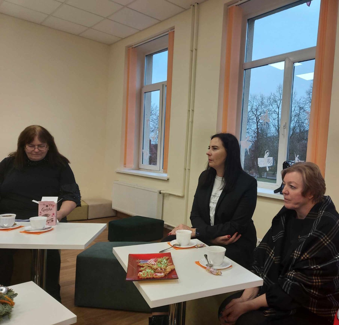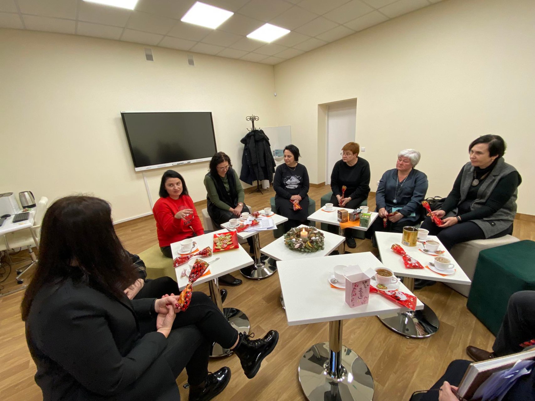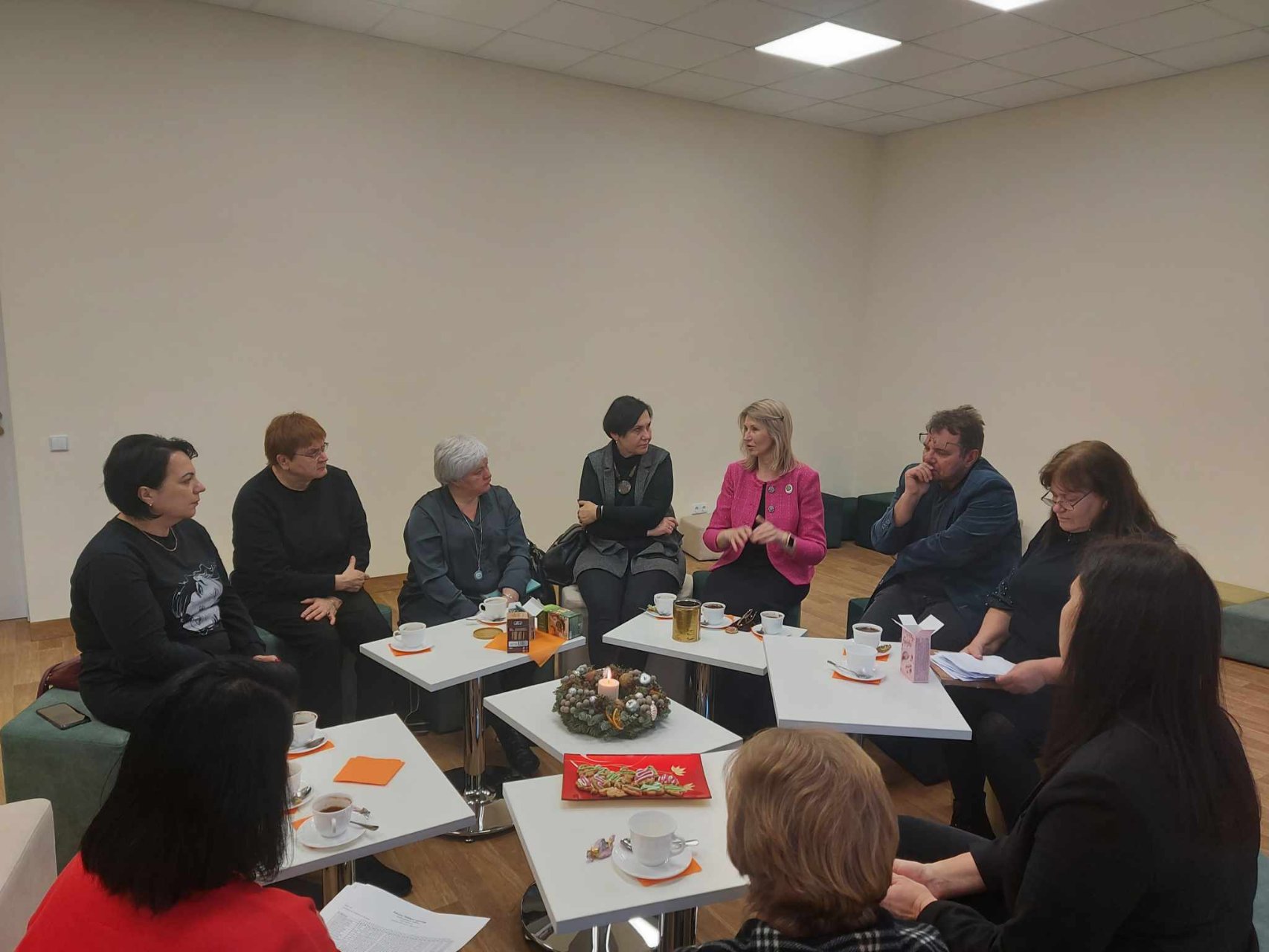 Pradžioje „Atžalyno“ gimnazijos direktorė Asta Valuntienė pasidalijo keliomis lietuvių k. ir literatūros mokytojos Romualdos Juknevičienės mintimis apie tai, kaip literatūros pamokos padeda visapusiškai ugdyti žmogų. Anot lituanistės, juk pavyksta su gimnazistais pasigrožėti tekstu, jie įžvelgia gilesnių prasmių, ir tada norisi Justino Marcinkevičiaus Mažvydui pritarti, kad tas akmuo Sizifui ne bausmė, o laimė, kad be to akmens gyvenimo nebūtų. Vadovė pasidžiaugė visais susirinkusiais ir pakvietė prie arbatos ar kavos puodelio pasidalyti mintimis, kaip sekasi dirbti su pirmokais gimnazistais. Gimnazijos lietuvių kalbos ir literatūros mokytoja Romualda Juknevičienė džiaugėsi imliais, darbščiais, stropiais, mėgstančiais skaityti pirmokais gimnazistais, akcentavo jų smalsumą. Be to, mokytoja pabrėžė, kad kelia sau didelius reikalavimus, pamokoje dėmesį skiria įvairioms veikloms, vizualizacijai, nes nori sudominti gimnazistus, sulaukia puikaus grįžtamojo ryšio. „Žemynos“ progimnazijos lituanistės Regina Gasparavičienė ir Rūta Stuogienė teigė, kad šie mokiniai buvo motyvuoti, kūrybingi, smagu girdėti, kad situacija nepasikeitė. Gimnazijos lituanistė Valda Juknienė atsinešė pirmokų laiškų, rašytų tiek jai, tiek buvusioms lietuvių kalbos ir literatūros mokytojoms. Iš skaitomų ištraukų buvo galima suprasti, kad mokiniai nuoširdūs, jautrius žodžius skyrė savo mokytojoms, atvirai rašė, ko išmoko, o kas vis dar nesiseka. Mokytoja Valda Juknienė pasakojo, kad adaptacija, nors ir buvo nelengva, bet jau sėkmingai baigėsi, dabar viskas gerai ir kartu mokomasi suprasti, kaip literatūra gali padėti nepaklysti paauglystės pasaulyje. Lygumų pagrindinės mokyklos lietuvių kalbos ir literatūros mokytoja Daiva Balčiūnienė pastebėjo, kad iš pradžių mokiniams nebuvo lengva priprasti gimnazijoje prie didelės klasės, bet reikėjo tik laiko. Direktorė Asta Valuntienė teigė, kad stebėjo pamoką, džiaugėsi mokinių įsitraukimu į darbą, jų dėmesingumu. Lietuvių kalbos ir literatūros bei teatro mokytojas Valdas Gasparavičius kalbėjo, kad yra nelengva motyvuoti mokinius, ugdyti atsakomybės jausmą, bet visada yra tokių gimnazistų, su kuriais galima pakalbėti apie literatūrą, ieškoti gilesnių prasmių. Tačiau slegia, kad mokytojai tampa besikeičiančių programų įkaitais, atnaujinami egzaminai, reformos kartais varo į neviltį. Be to, lituanistas Valdas akcentavo daug kitų problemų, pavyzdžiui, labai suprastėjusi mokinių atmintis, I gimnazijos klasėje lietuvių kalbai ir literatūrai skiriamos tik 4 pamokos per savaitę. Balsių pagrindinės mokyklos lituanistė Dalia Čeponienė pritarė, kad iš tiesų prie raštingumo blogėjimo prisideda pratybos, jos tik blogina situacija, mokiniai vis mažiau rašo ranka patys. Jai paantrino „Žemynos“ progimnazijos lituanistė Regina Gasparavičienė. Be kita ko, mokytoja Regina pabrėžė, kad į gimnaziją ateina įvairių gabumų ir motyvacijos mokiniai. Jai pritarė ir „Žemynos“ progimnazijos direktoriaus pavaduotoja Modesta Tamašauskienė. Gimnazijos direktorė pastebėjo, kad mokinių branda ne visada sutampa su jų amžiumi, taip pat, kaip rodo anketos, jiems labai svarbi gimnazijos jauki aplinka ir santykiai su mokytojais. Vadovė Asta Valuntienė padėkojo mokytojai Reginai už pagalbą vykdant abiturientų lietuvių kalbos ir literatūros įskaitą, pasidžiaugė visų pedagogų bendru darbu. Lygumų pagrindinės mokyklos direktoriaus pavaduotoja Lina Rutkevičienė tarė ačiū už galimybę susitikti, pakalbėti, išgirsti.