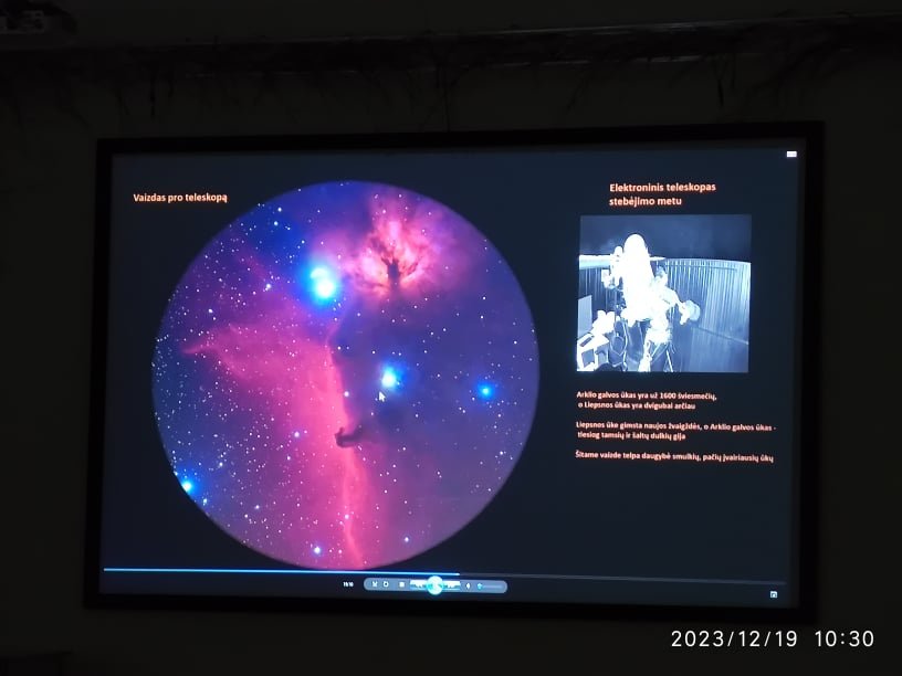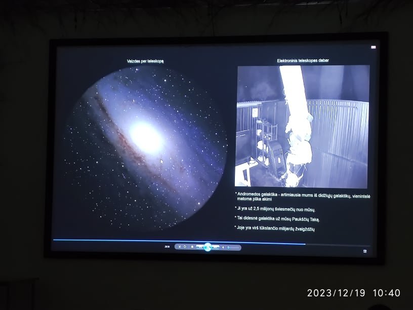 Gruodžio 16 dieną gimnazistai dalyvavo edukaciniame renginyje „Teleskopas ir Visata“. Jį vedė organizatorius Simas Šatkauskas.