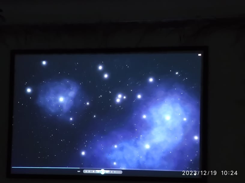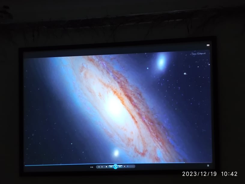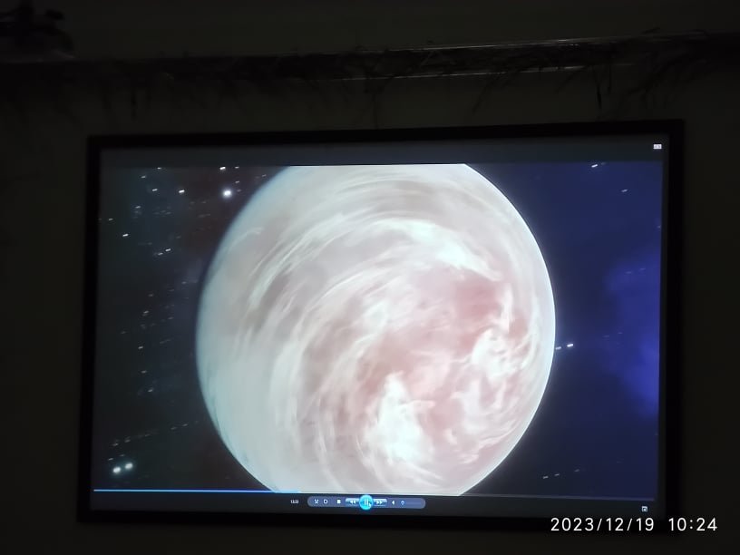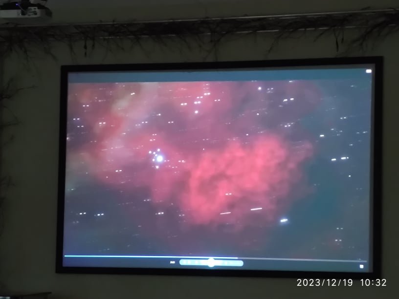 Svečias mus pakvietė į informatyvią, moksliniais duomenimis ir stebėjimais paremtą pramoginę edukaciją – virtualią kelionę teleskopu. Renginys buvo labai įdomus, vyko kiek kitokiu formatu – buvo galima išvysti ne tik skaidres, bet ir specialia kompiuterine programa sukurtą vaizdo įrašą. Edukatorius nuosekliai papasakojo apie kiekvieną kūną ar reiškinį, matomą vaizdo klipe. Atrodė, jog tiesiog žiūrime filmą! Šitaip apkeliavome Saulę, Mėnulį bei mūsų galaktikų planetas, tyrinėjome jų paviršius. Sužinojome, kokios yra keisčiausios žvaigždės, kas yra ūkas, Paukščių Takas, kuo įspūdingos galaktikos, kodėl tokios bauginančios yra juodosios skylės ir kokie mes vis dėlto esame maži, palyginus su visata.