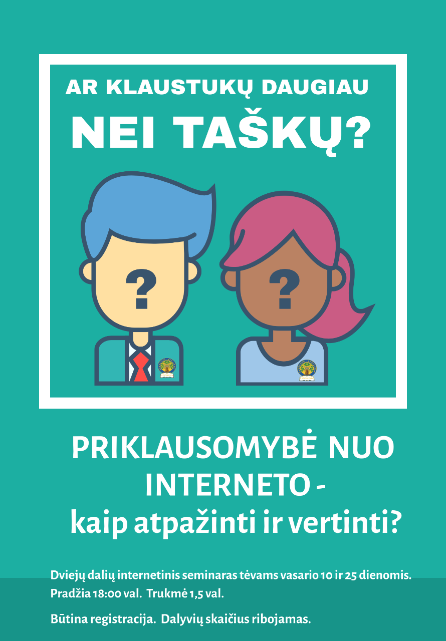 Kviečiame gimnazijos mokinių tėvus registruotis į internetinį seminarą „Priklausomybė nuo interneto – kaip atpažinti ir vertinti?“