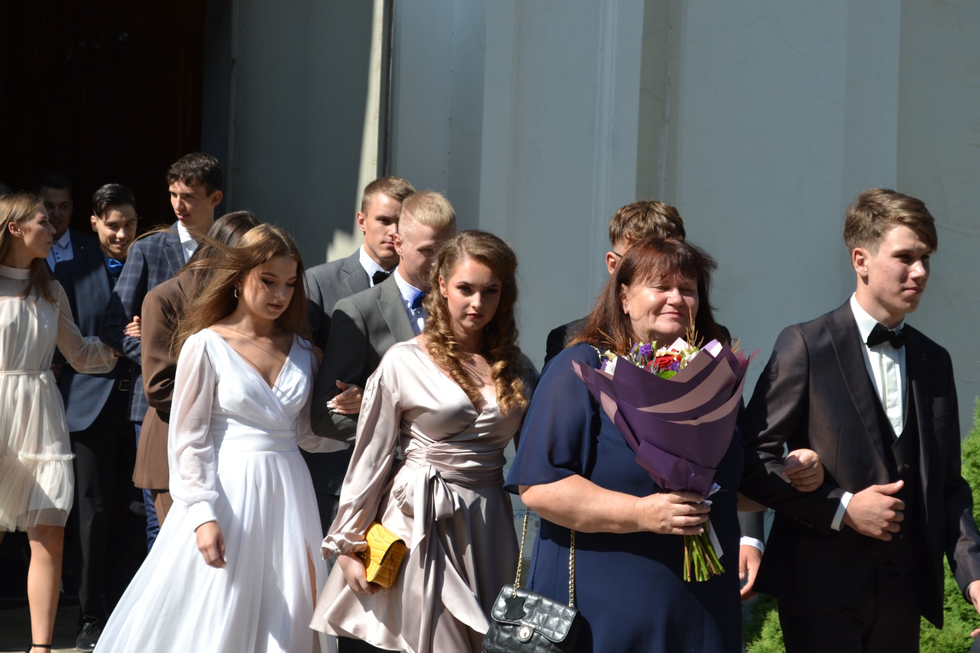 Kiek vėliau abiturientai, lydimi auklėtojų, įsikibę vienas kitam į parankę, patraukė į Pakruojo Šv. Jono Krikštytojo bažnyčią dalyvauti šv. Mišiose. Pakruojo dekanas, klebonas, kunigas Remigijus Čekavičius pasveikino abiturientus, gimnazijos administraciją, mokytojus, abiturientų tėvelius, rajono valdžios atstovus, politikus, svečius, parapijiečius. Dekanas drąsino jaunus žmones, kad, kai teks susidurti su sunkumais ar susimąstyti apie gyvenimo prasmę, nepamirštų, jog Dievas dovanoja viltį ir patiki ateitį savo vaikams.