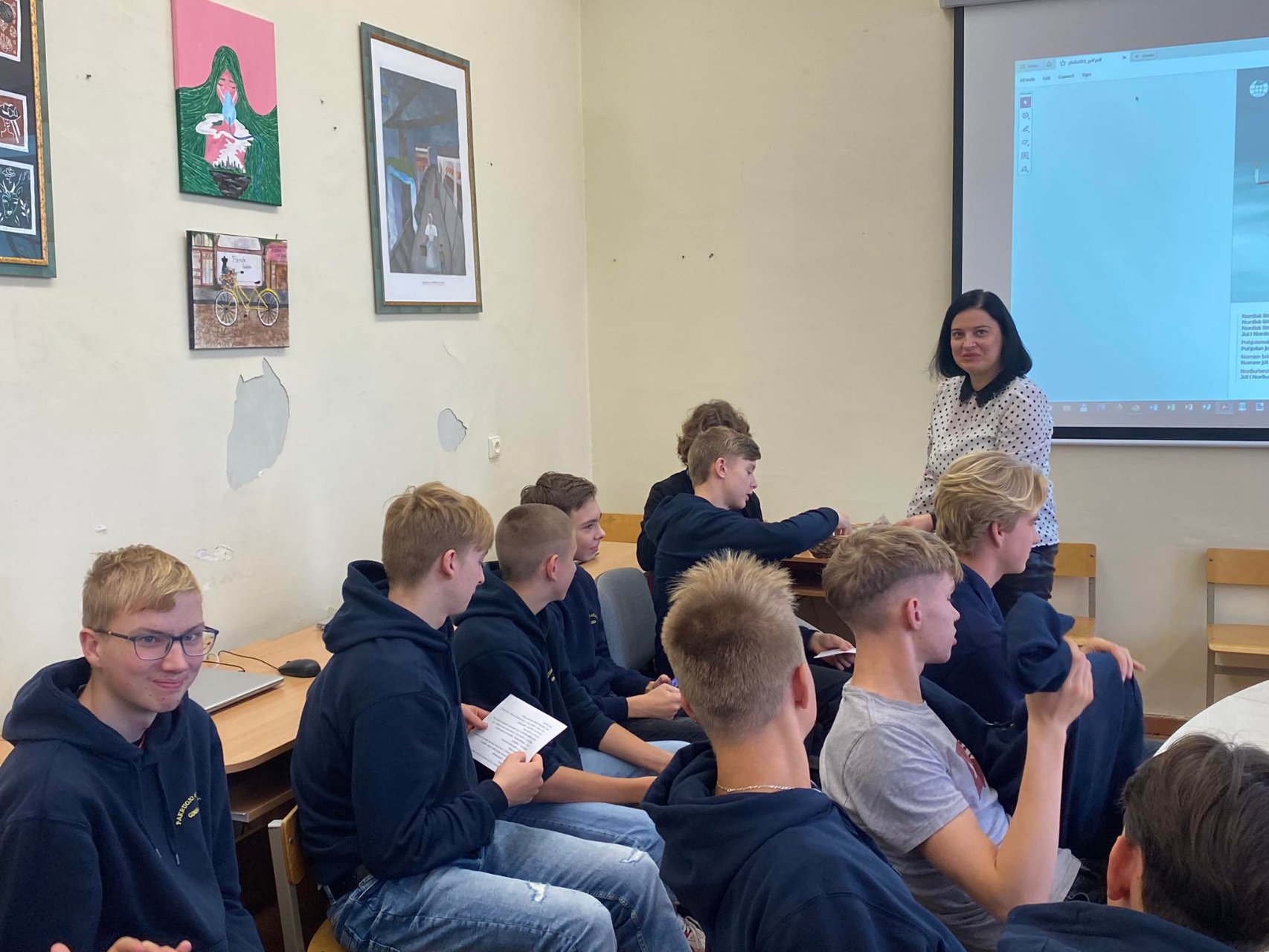 Lapkričio 8 d. III ir IV klasių gimnazistų grupelė kartu su fizikos mokytoja Vida Imanavičiūte vyko į VU Šiaulių akademijos STEAM centro fizikos ir inžinerijos laboratoriją. Visi kartu atlikome tiriamąjį darbą ,,Pažvelk į žvaigždėtą dangų“. Iš pradžių prisiminėme I. Niutono eksperimentą, kad baltą šviesą galima suskaidyti į skirtingas spalvas, taip pat aptarėme spektrų susidarymą. Pirmoje darbo dalyje išsikėlėme tikslą – nustatyti skirtingus šviesos šaltinių spektrus. Atlikome bandymus su 4 skirtingomis lemputėmis, žvake bei lazeriu. Be to, analizavome spektro plotį, intensyvumą, bangos ilgį. Antroje dalyje ieškojome išlydžio spektrų, o trečioje remdamiesi antrosios dalies gautais rezultatais sužinojome, kokių dujų reikia, kad žvaigždė šviestų.