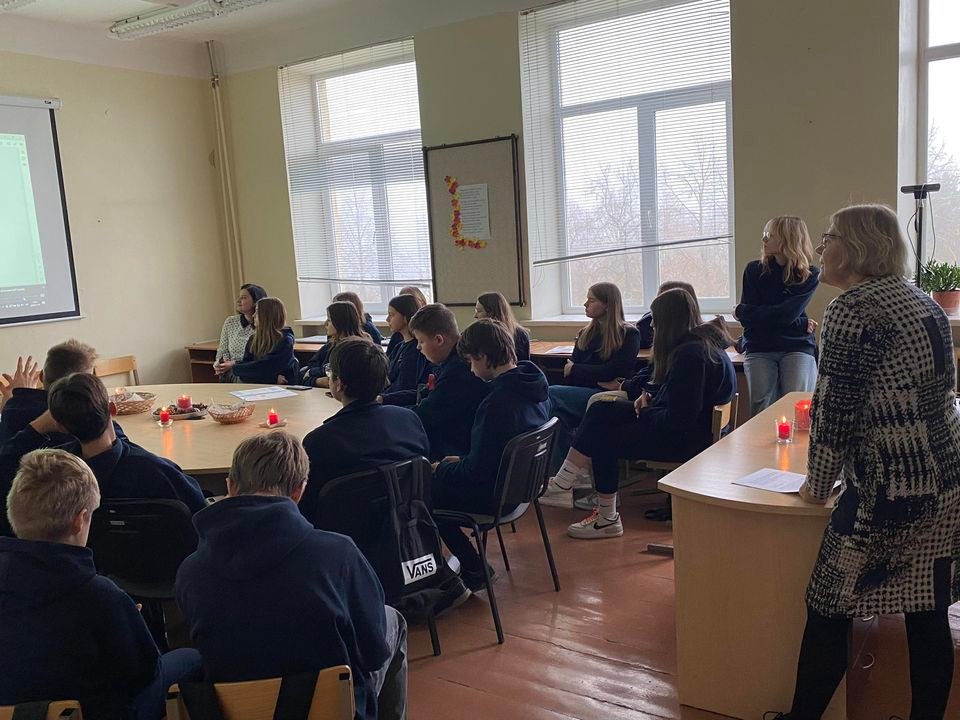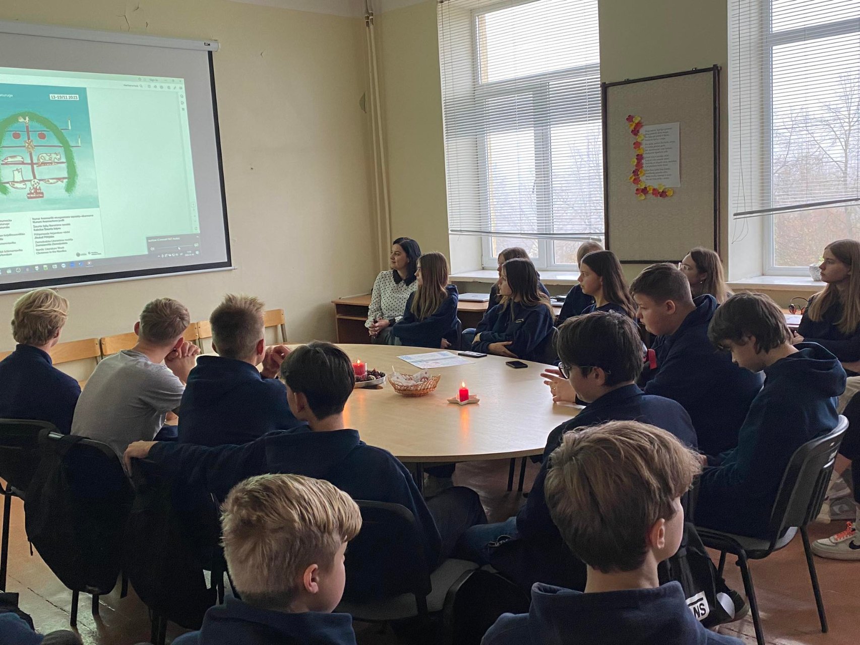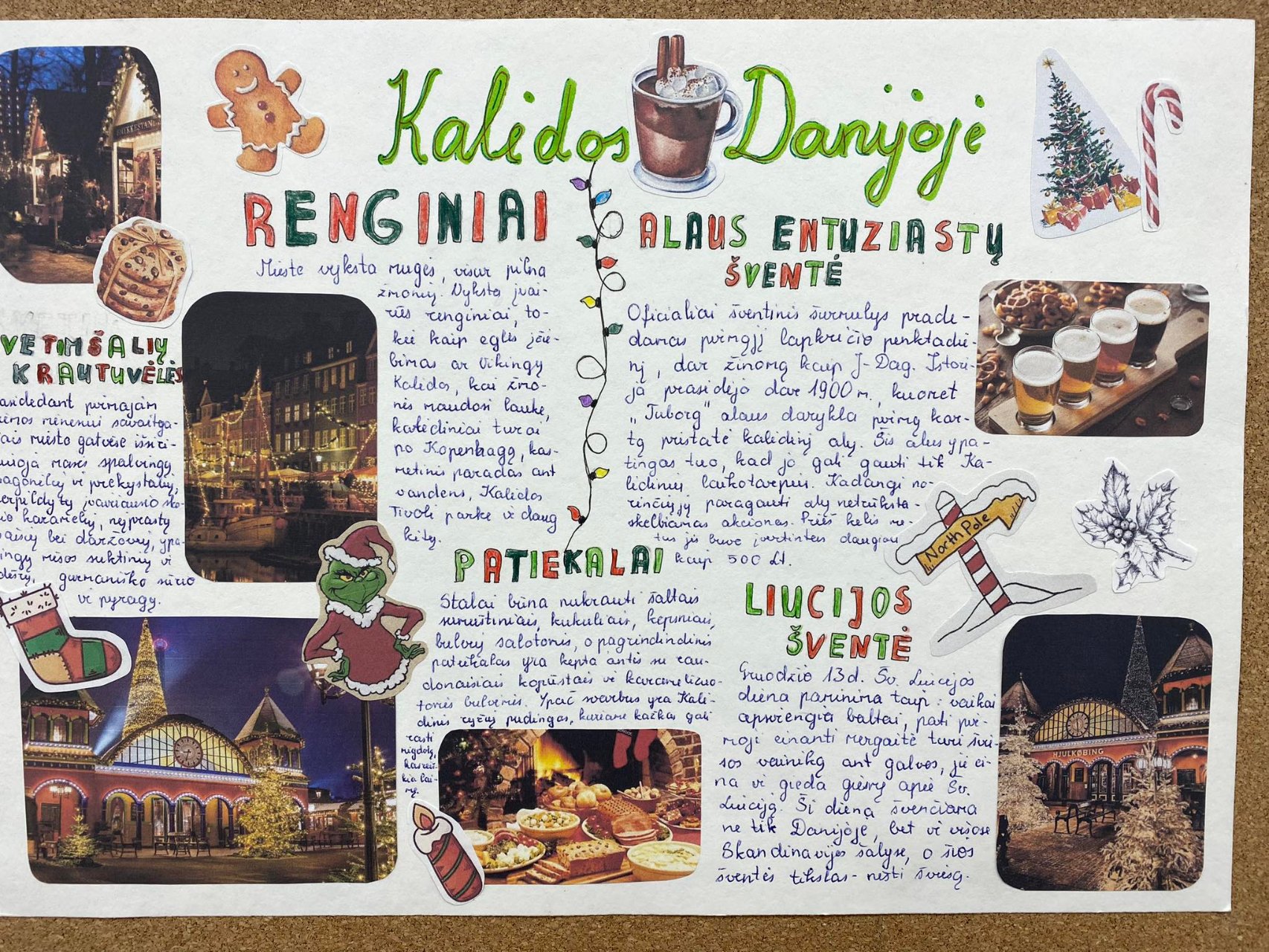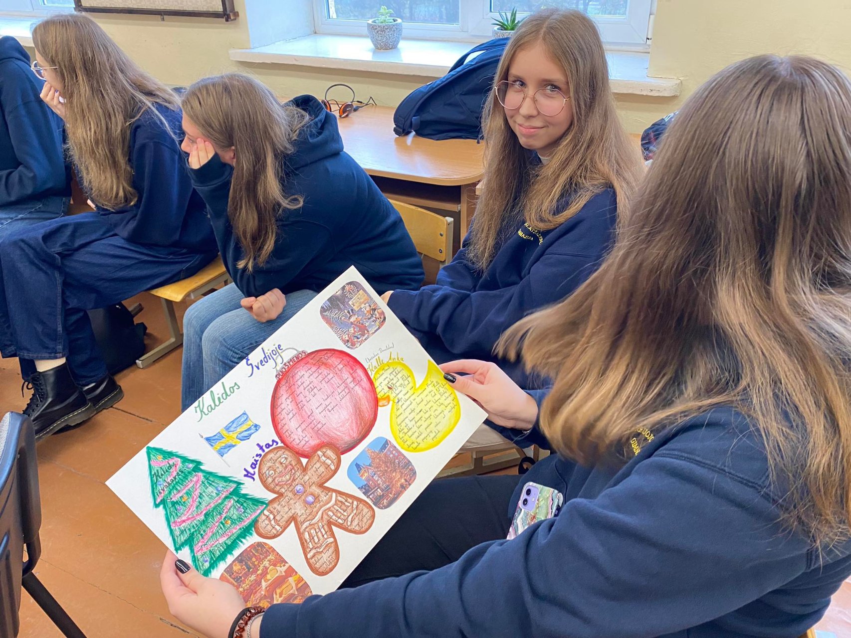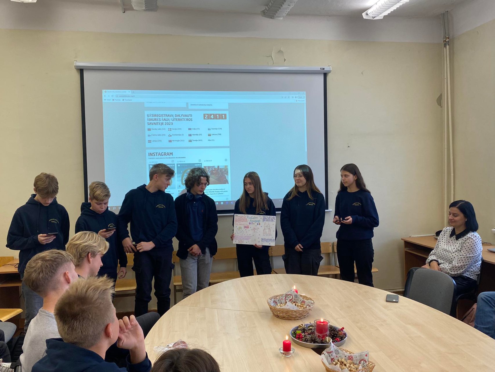 Bibliotekininkė trumpai pristatė šių metų Šiaurės šalių literatūros savaitės temą, dalyvius, aktualumą, interneto puslapį. Po to mokiniai papasakojo, kaip švenčiamos šv. Kalėdos Suomijoje, Švedijoje, Norvegijoje ir Danijoje. Komandos paruošė labai skirtingus ir įdomius pristatymus: viena komanda rodė pateiktis, kita pakvietė dalyvauti viktorinoje „Kahoot“ platformoje, kitos sukūrė informatyvius plakatus. Klausydami gimnazistų mintyse jau ragavome kalėdinių pyragų, sužinojome, kad dovanas neša ir nykštukai, išgirdome daug naujų dalykų apie taip laukiamos šventės prasmę, tradicijas, papročius, iš naujo atradome jos grožį, o gal net pasiryžome aplankyti kokią nors šalį. Be to, dar skaitėme šiemet siūlomą tekstą – Ingvild H. Rishøi knygos „Stargeitas. Kalėdų pasaka“ ištrauką. O pabaigoje neiškentėme. ir paragavome kūčiukų – tegu taip prasideda advento laukimas, o paskui ateina šv. Kalėdos Lietuvoje...