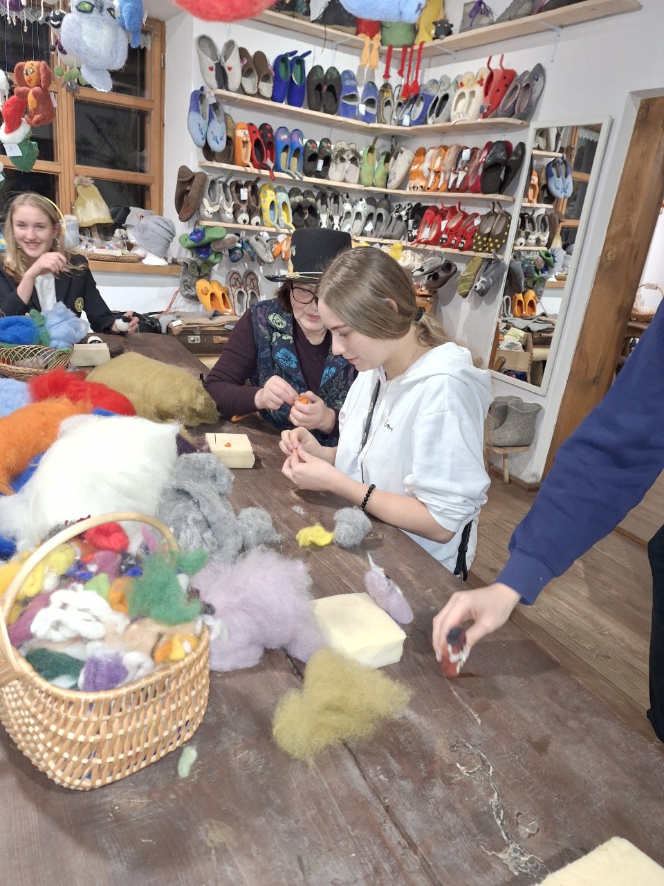 Mokiniams labai patiko manufaktūroje praleistas laikas – jie nemažai sužinojo apie vilnos ir jos gaminių reikšmę senovės lietuvių gyvenime, senovines vilnos apdirbimo technologijas. Kiekvienas gimnazistas pasigamino veltą žaisliuką. Labai ačiū manufaktūros vadovei Janinai Vansauskienei, kuri nuoširdžiai kiekvienam padėjo suvaldyti vilną, išgauti reikiamą formą, labai maloniai bendravo su jaunimu.