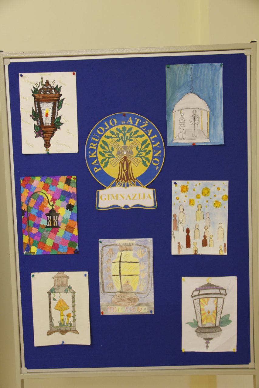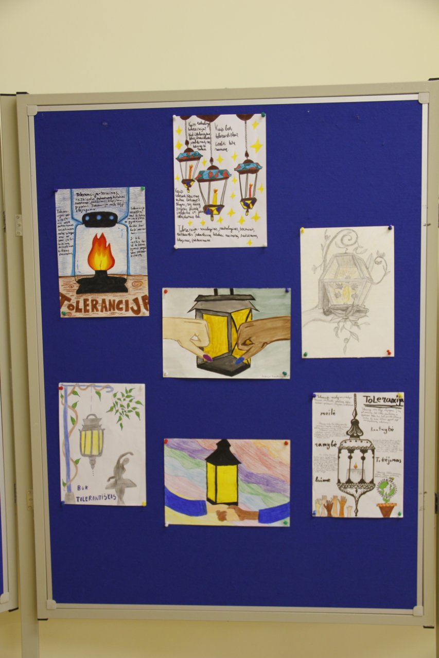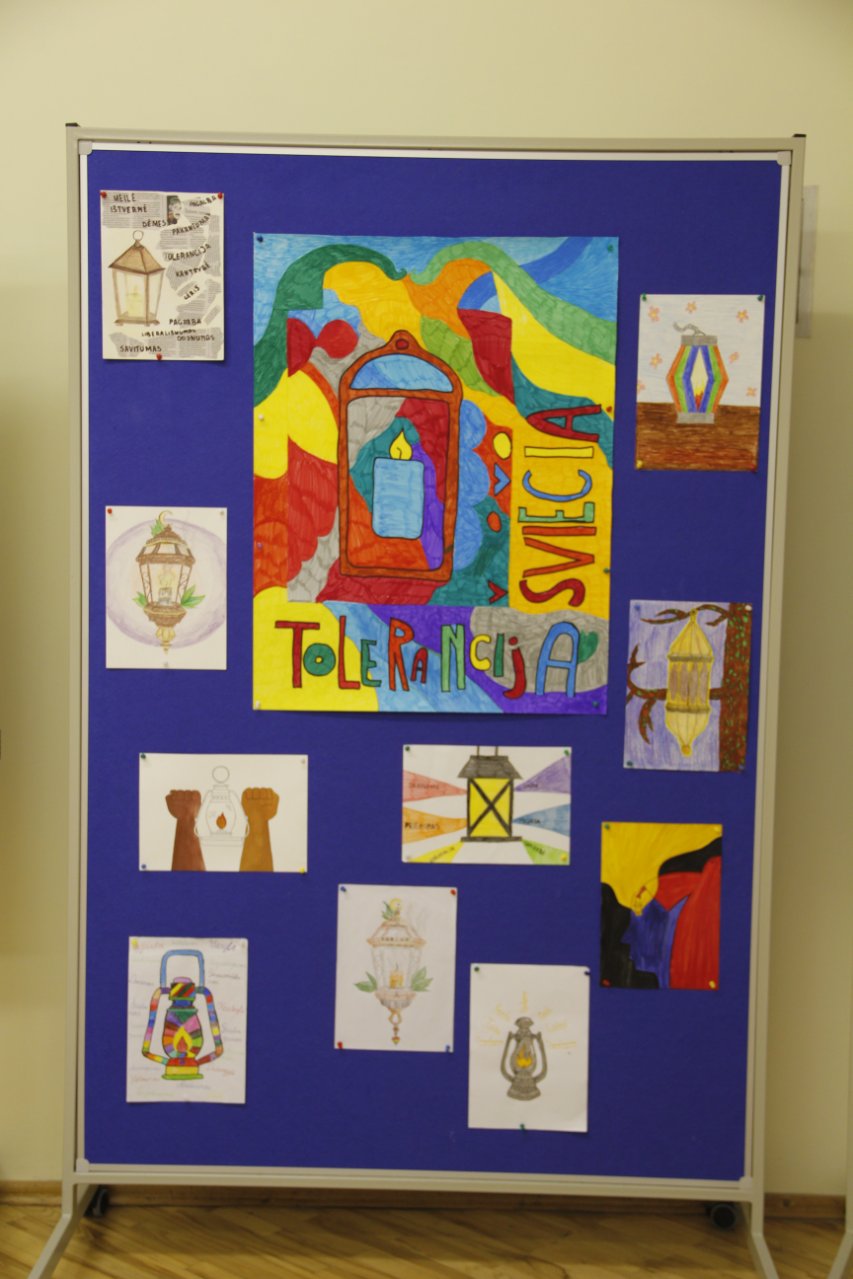 Gimnazijoje Tarptautinės tolerancijos dienos stendą kūrė ne tik I klasių gimnazistai, bet ir II bei IV klasių mokiniai. Visi noriai dalijosi savo piešiniais, juose išreiškė tolerantiškumą kitokiems žmonėms, neįprastai aplinkai, netikėtai gyvenimo situacijai.