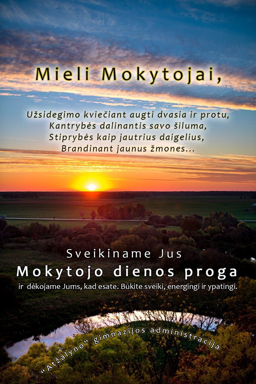 BŪKITE ir toliau ŠALIA, mielieji mokytojai, kad patikėtume, jog gyvenimas gali pasiūlyti daugiau nei iki šiol išdrįsome pasiimti. Tikime, kad ir toliau visa širdimi, visomis jėgomis mylėsime, matysime, girdėsime vieni kitus.