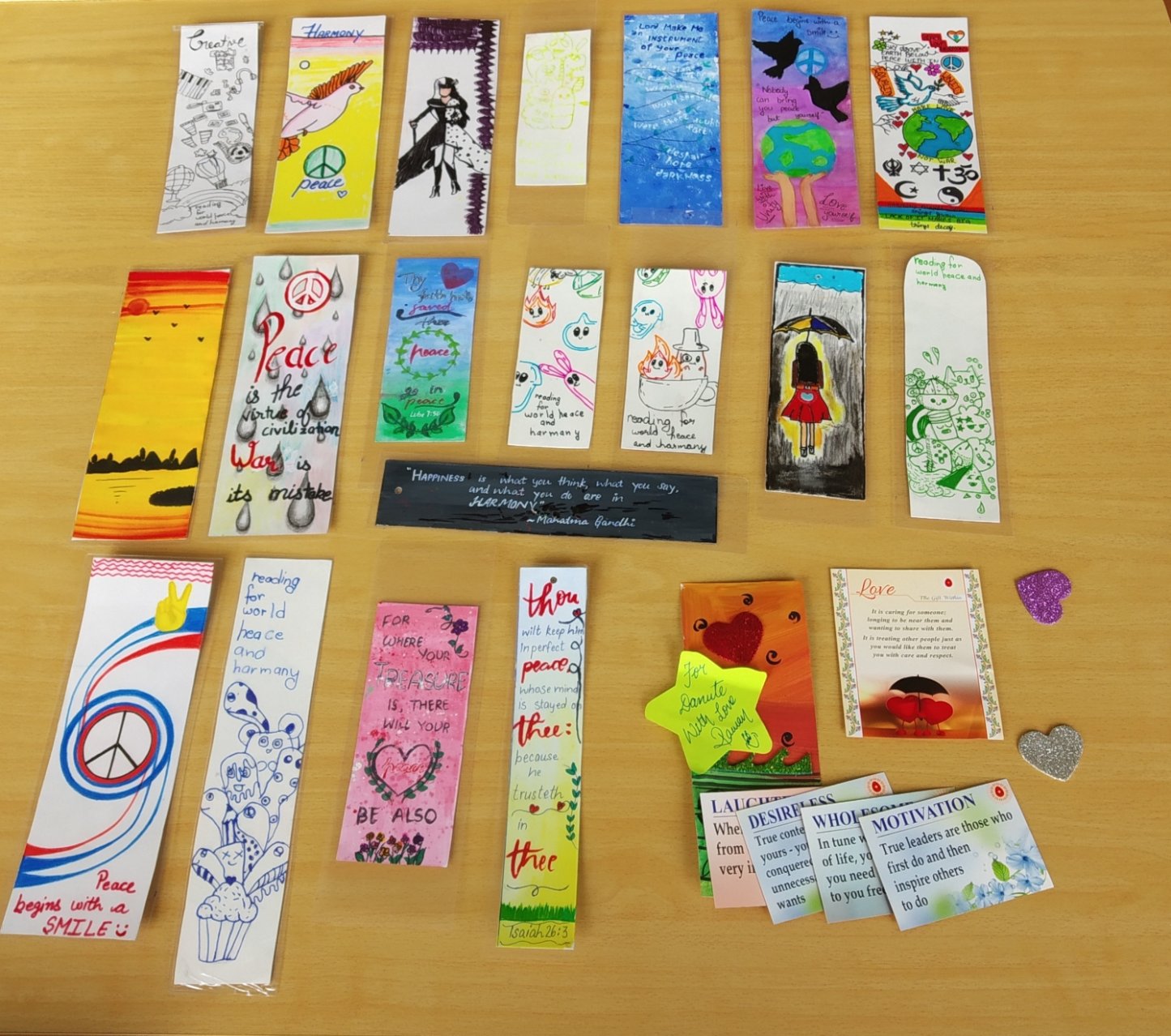 Į mūsų gimnazijos biblioteką, ištvėrusi ilgą kelionę, atkeliavo siunta iš Indijos. Joje – Indijos mokinių sukurti knygų skirtukai. Mūsų gimnazistus ir Delio pasaulinės viešosios mokyklos Ludhianoje (Delhi World Public School Ludhiana) kūrybingus mokinius sujungė tarptautinis knygų skirtukų mainų projektas „Bookmark Exchange Project“, kuriame ir dalyvaujame. Mokyklos partnerės bibliotekininkė Raman Deep, tarptautinės mokyklų bibliotekų asociacijos pirmininkė, šio projekto koordinatorė, džiaugėsi, kad buvo labai malonus rytas, kai jų šalį pasiekė puikūs mūsų gimnazistų kūriniai.