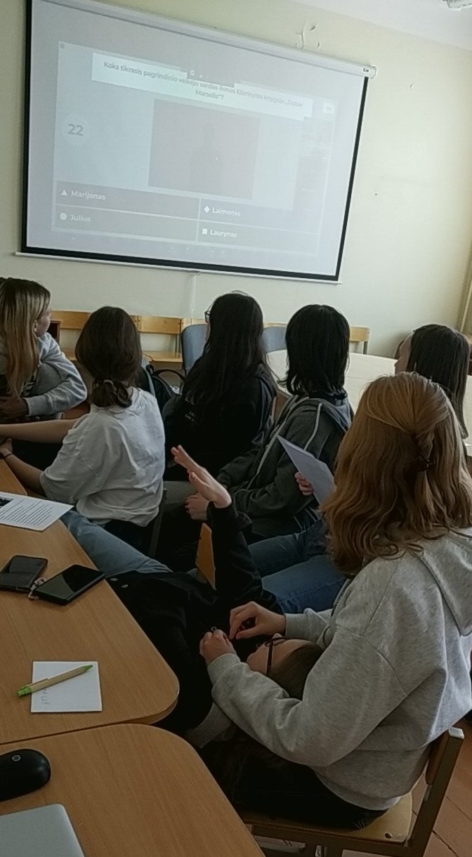 Džiaugiamės, kad puikiai sekėsi mūsų gimnazijos mokinių komandai „Mes ir trejetas“, kuri balandžio 28 d. dalyvavo Lietuvos nacionalinės Martyno Mažvydo bibliotekos organizuotame literatūriniame „Protų mūšyje“. Mokiniai pasirodė daug išmanantys apie akcijos „Metų knygos rinkimai 2022“ paauglių kategorijoje besivaržančias knygas, nemažai žinantys apie jų autorius ir parašymo aplinkybes. Komanda užėmė I vietą ir laimėjo nuotolinį susitikimą su „Metų knygos“ autoriumi.