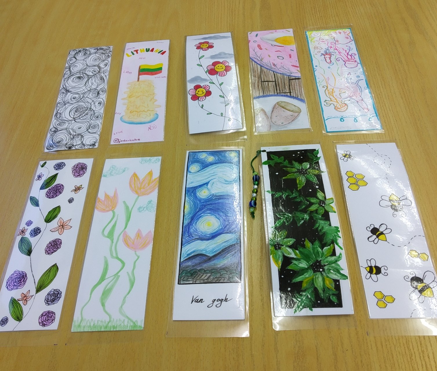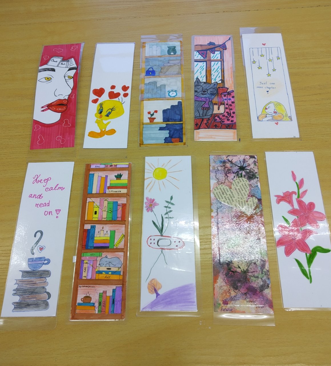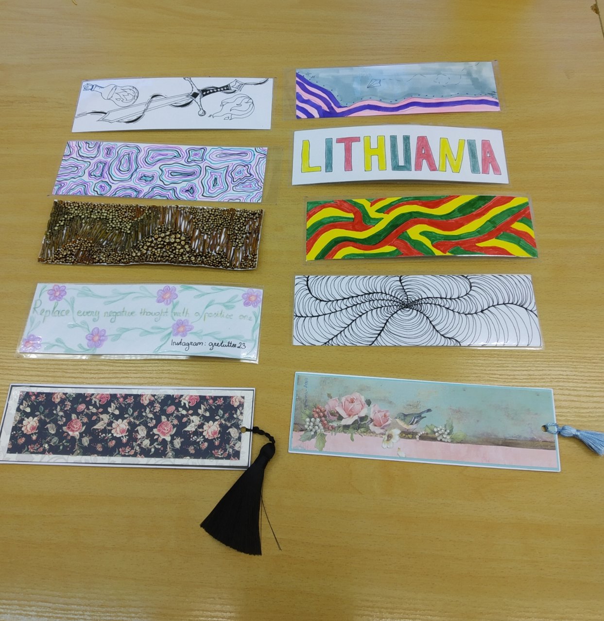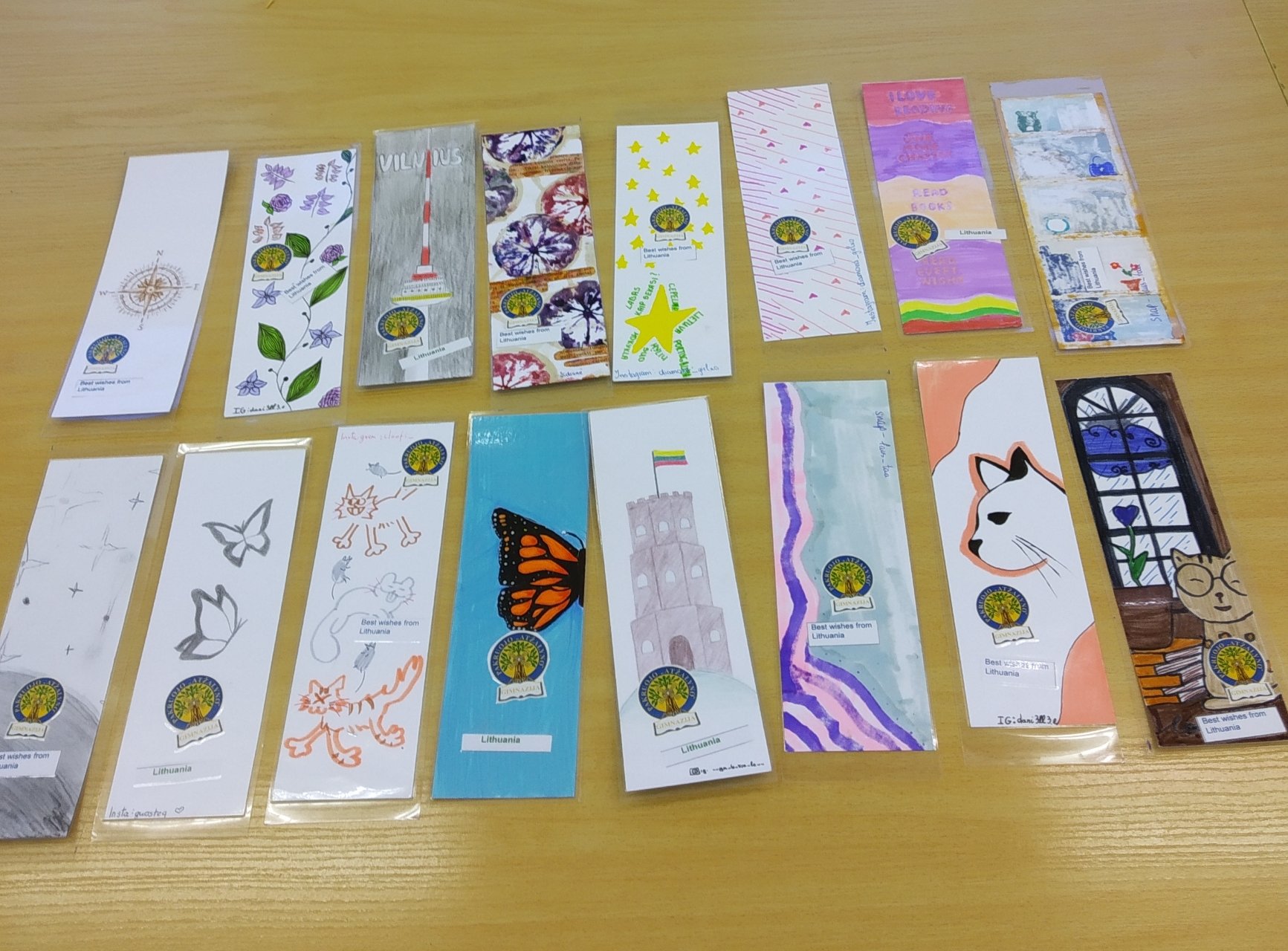 Trečius metus iš eilės mūsų biblioteka dalyvauja tarptautiniame knygų skirtukų mainų projekte „Bookmark Exchange Project“. Gimnazistai kuria skirtukus ir jais keičiasi su kitų pasaulio šalių mokymo įstaigų mokiniais. Džiugu, kad šiais mokslo metais prie šio projekto prisijungė net 42 mūsų gimnazistai. Jų kūrybos rezultatas – 62 skirtukai, skirti Malaizijos ir Portugalijos mokiniams. Nuoširdžiai dėkoju gimnazistams, sutikusiems dalyvauti projekte ir dalelę savo laiko skyrusiems kūrybai.