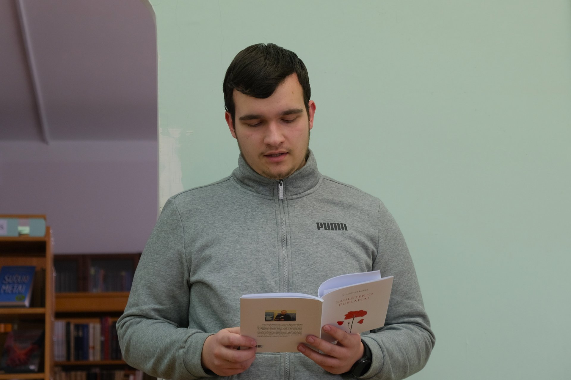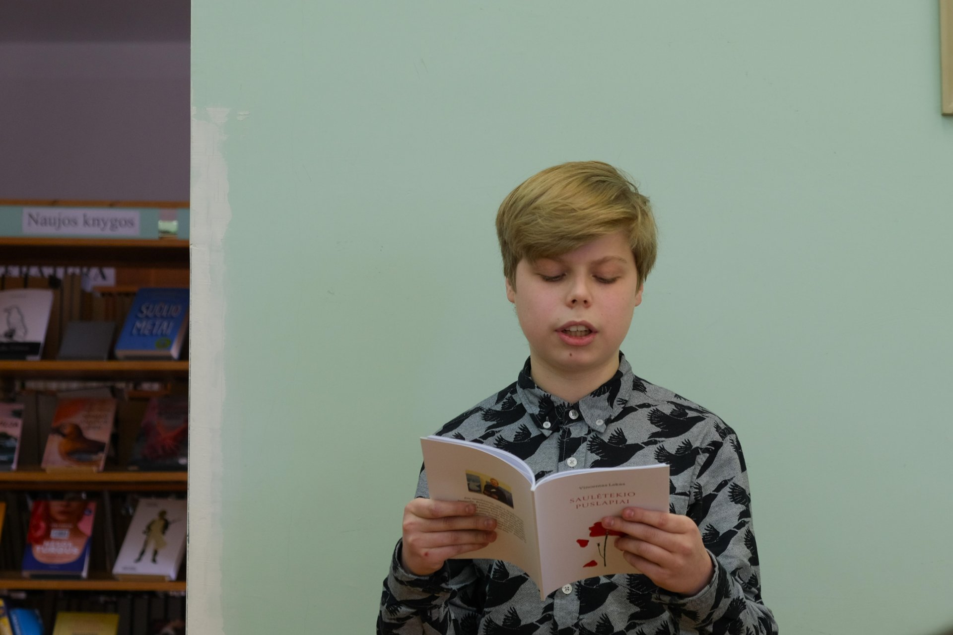 Gražią popietę prieš pat pavasario atostogas belaukiant šv. Velykų gimnazijos bibliotekoje įvyko IV c klasės mokinio Vincento Leko knygos pristatymas. Visi labai didžiuojamės abiturientu Vincentu, kuris išleido eilėraščių knygą „Saulėtekio puslapiai“. Renginį pradėjo I a klasės gimnazistas Dominykas Kairys, atlikęs kūrinį gitara. Bibliotekininkė Danutė Kučinskienė sujaudinta muzikos garsų suteikė žodį gimnazijos direktorei Astai Valuntienei, kuri palinkėjo Vincentui branginti savo pirmąją knygą ir ateityje mums padovanoti dar ne vieną. Gimnazijos muziejaus vadovas Vidutis Skirmantas padėkojo ketvirtokui už istorinę dovaną muziejui, o pilietiškumo pagrindų mokytoja, specialioji pedagogė ir Pakruojo literatų klubo „Židinys“, kuriam priklauso ir Vincentas, narė Inta Bulaitienė didžiavosi Vincento kūrybiškumu, produktyvumu ir neblėstančiu noru kurti. Antrokė gimnazistė Evelina Klevinytė atliko kūrinį ukulėle, o po muzikinio kūrinio lietuvių kalbos ir literatūros mokytoja Valda Juknienė Vincentui skyrė savo pačios sukurtą eilėraštį bei padėkojo jam už nuolatinį kūrybiškumą. IV b klasės gimnazistė Dominyka Dubickaitė, knygos autoriaus pusseserė Emilija Šimaitytė, brolis Valentas Lekas ir II c klasės gimnazistas Karolis Grušas popietę papuošė Vincento kūryba – skaitė eilėraščius iš jo knygos „Saulėtekio puslapiai“. Kuratorė Inesa Tamulionytė-Poškauskienė tarė ačiū Vincentui ir šiltai jį apkabino. Renginio pabaigoje Vincentas atsakė į klausimus, pasidalijo patariamais, kaip pradėti rašyti, papasakojo, kas jį įkvepia kurti, kada smagiausia tai daryti ir t.t.