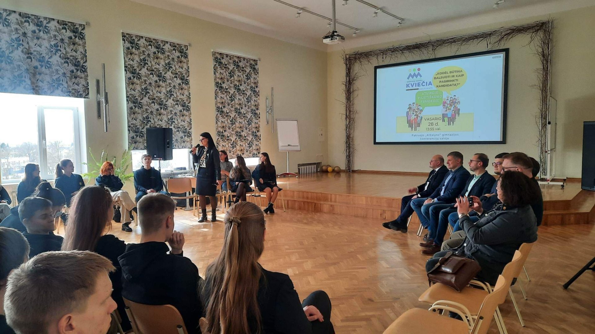 Vasario 28 dieną įvyko Pakruojo „Atžalyno“ gimnazijos mokinių seimo organizuota atvira pilietiškumo pamoka „Kodėl būtina balsuoti ir kaip pasirinkti kandidatą?“ Abiturientų mokytojais tapo Lietuvos socialdemokratų partijos, Tėvynės sąjungos-Lietuvos krikščionių demokratų, Liberalų sąjūdžio ir Lietuvos valstiečių ir žaliųjų sąjungos atstovai.