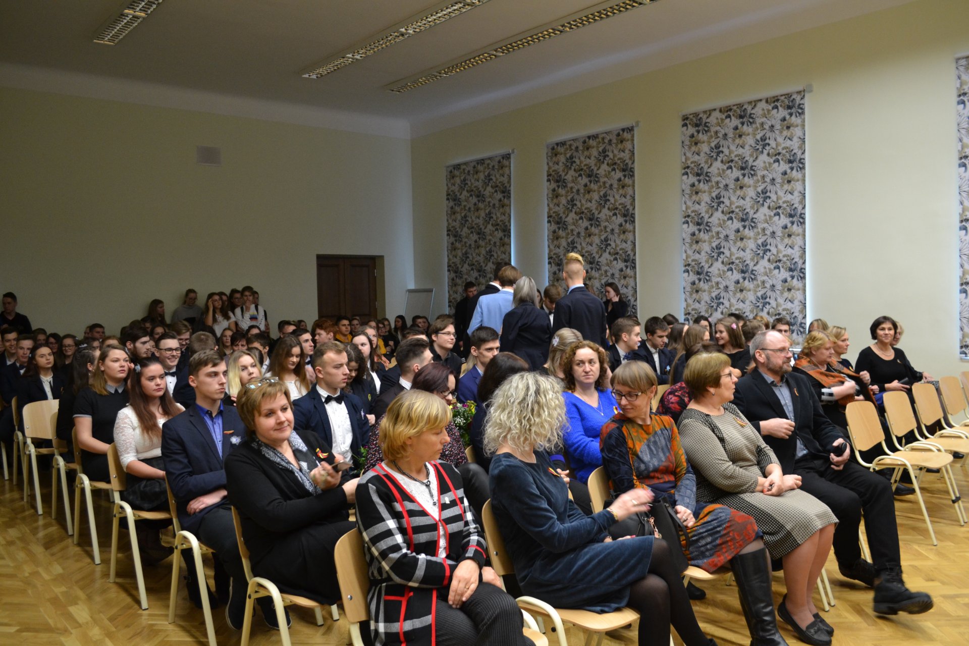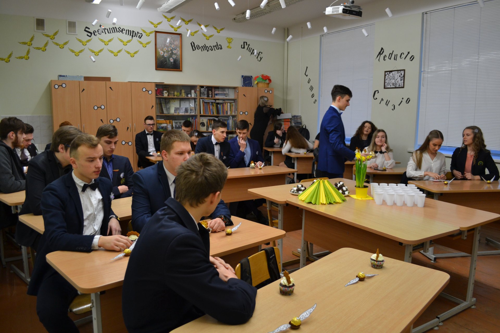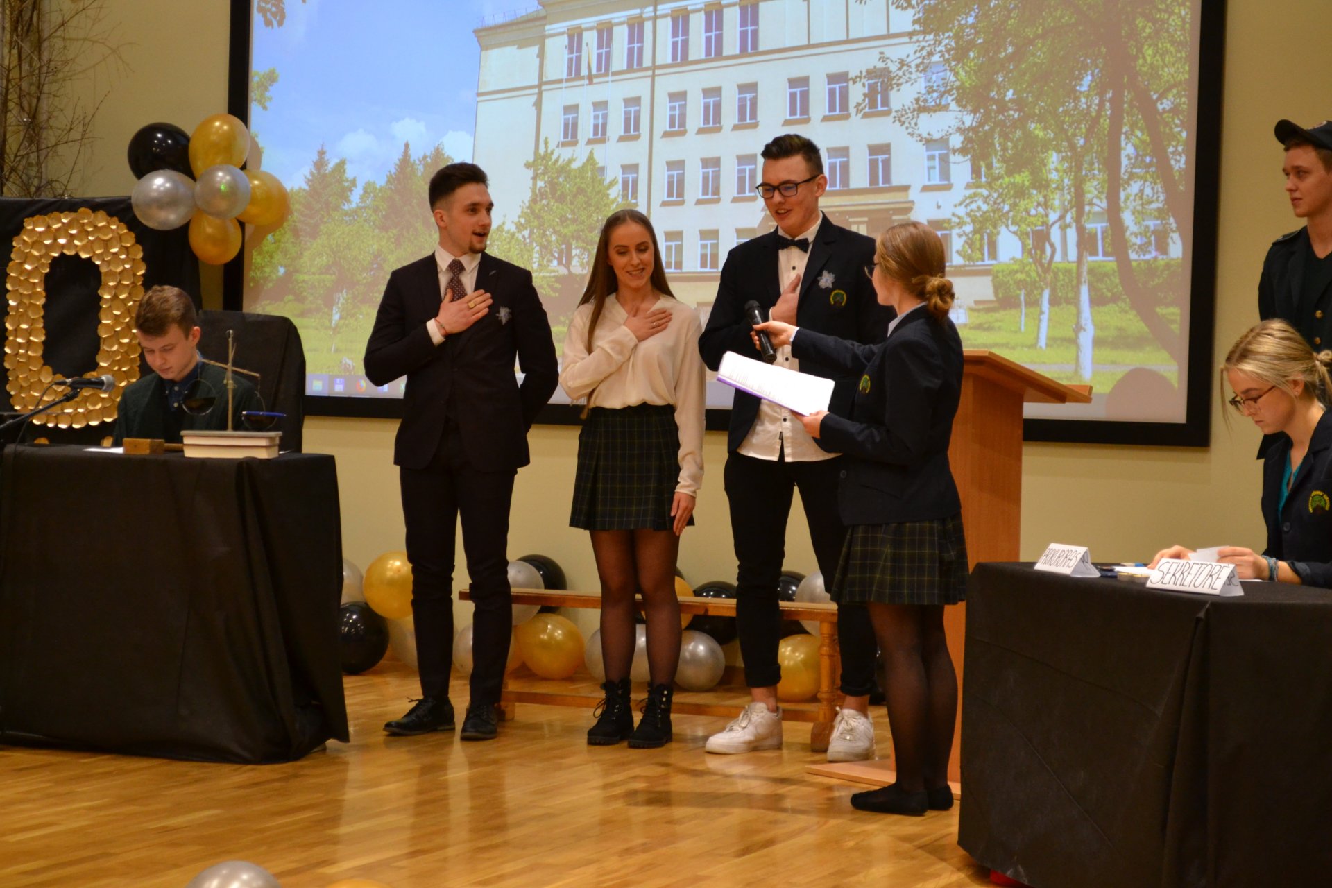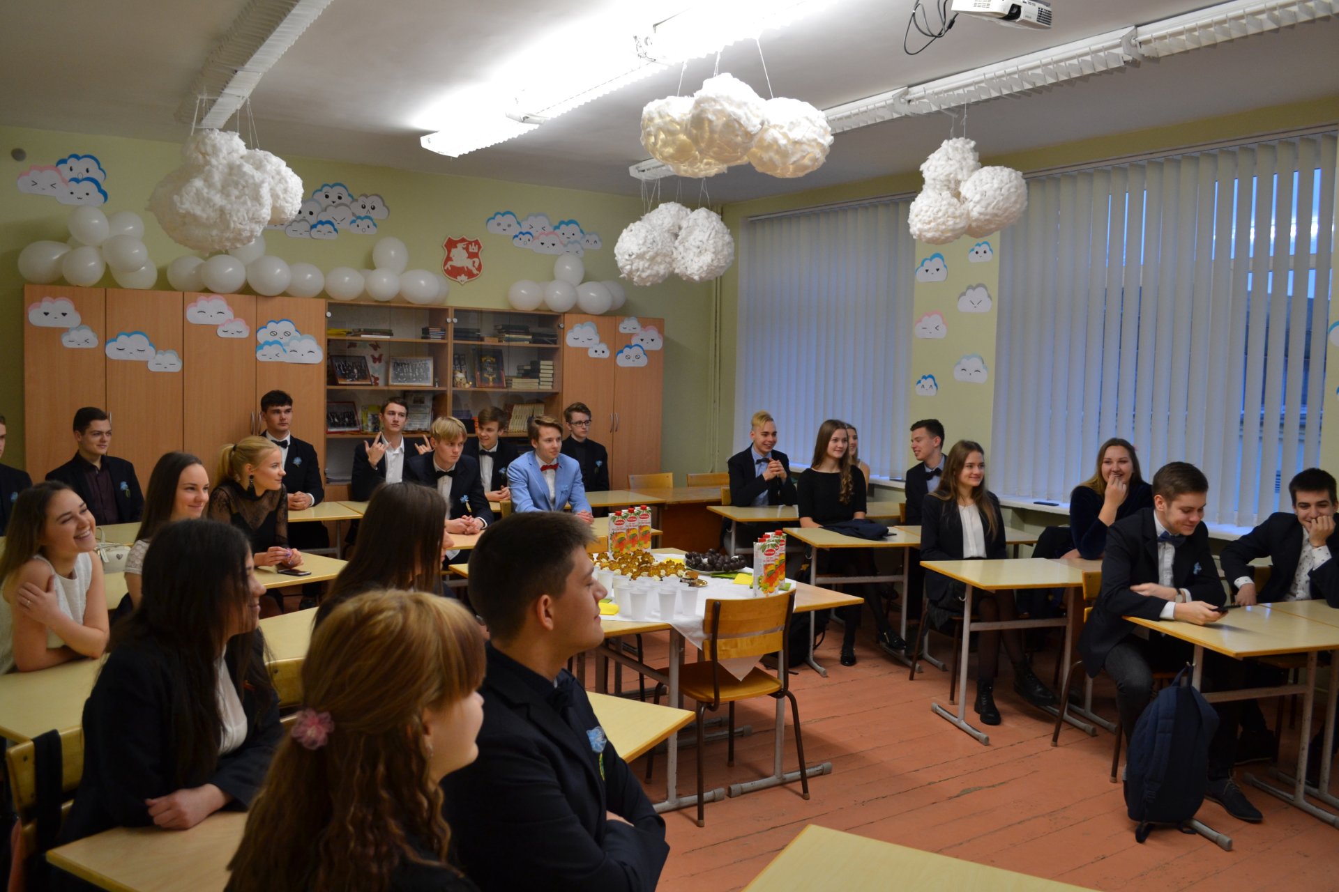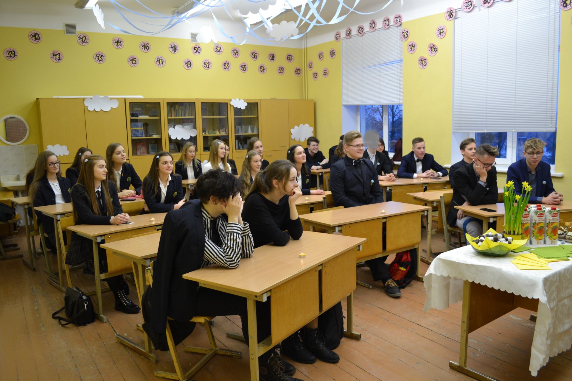 Po pamokų gimnazijos bendruomenė skubėjo į posėdžių ir konferencijų salę. Ketvirtokai buvo pakviesti į „teismą“, bet auklėtojoms pavyko juos apginti ir auklėtiniai buvo išteisinti. Vėliau abiturientai naudodamiesi programėle „Kahoot“ atsakė į penkiolika klausimų, prižadėjo nebedaryti jokių blogų darbų ir gavo pusatestačius.