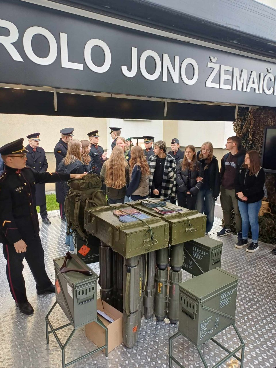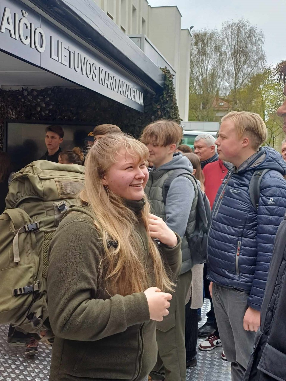 Balandžio 19 dieną dvi mūsų gimnazijos komandos, kūrusios filmukus konkursui „Praeities stiprybė – dabarčiai“, kartu su kitais istorija besidominčiais mokiniais bei istorijos mokytoja Gražina Kairiūkštiene ir mokytojo padėjėja Laima Žemaičiūniene vyko į Vilnių, kur konkurso finalininkams buvo organizuojama „Pilietinio saugumo ir istorijos diena“. Pirmiausia lankėmės Vilniaus universiteto Istorijos fakultete. Studentės supažindino su studijomis ir studentišku gyvenimu. Dėstytojas dr. Antanas Terleckas skaitė paskaitą apie partizanų, su kuriais jam teko bendrauti, gyvenimą ir likimus. Po to filmukų kūrėjams buvo įteikti diplomai bei dovanos. Vėliau keliavome į Signatarų rūmus, kur dalyvavome edukacijoje „Šifras „LAISVĖ“. Buvo įdomu, nes sužinojome apie partizanų naudotą šifrą slaptiems pranešimams perduoti. Beje, galėjome ir patys užšifruoti savo sugalvotą sakinį partizanų naudotu šifru „Ungurys“, paremtu matematiniais skaičiavimais. Pamatėme 1949 m. vasario 16 d. partizanų vadų pasirašytą LLKS Tarybos deklaraciją ir 1918 m. Vasario 16-osios Nepriklausomybės Akto kopiją. Paskutinė ekskursijos stotelė – Generolo Jono Žemaičio Lietuvos karo akademija. Joje mums buvo pristatyta karių apranga, ginkluotė. Stebėjome sraigtasparnio pakilimą, klausėme paskaitos apie studijas Generolo Jono Žemaičio Lietuvos karo akademijoje. Be to, apžiūrėjome auditorijas, sporto salę, kursantų gyvenamąsias patalpas. Diena prabėgo greitai, nes buvo netradicinių veiklų, taip pat išradingai domėdamiesi praeitimi pagilinome savo istorijos žinias.