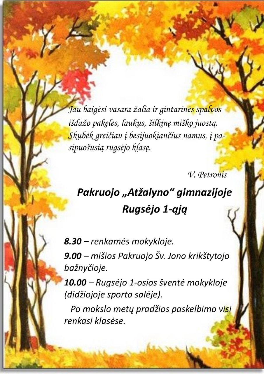 I-ų klasių tėvelius kviečiame į mokinių tėvų susirinkimą, kuris įvyks 2015 rugsėjo 16 dieną 17:15val. Pakruojo „Atžalyno“ gimnazijoje.